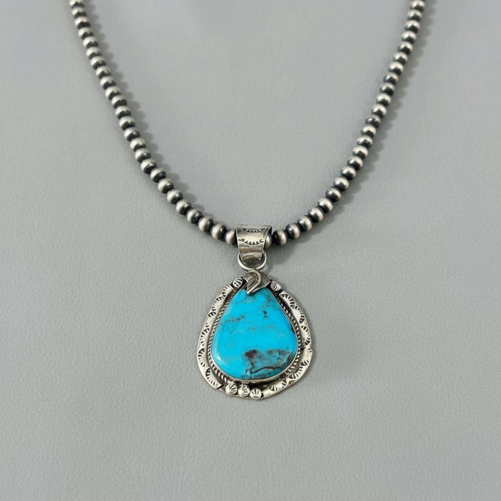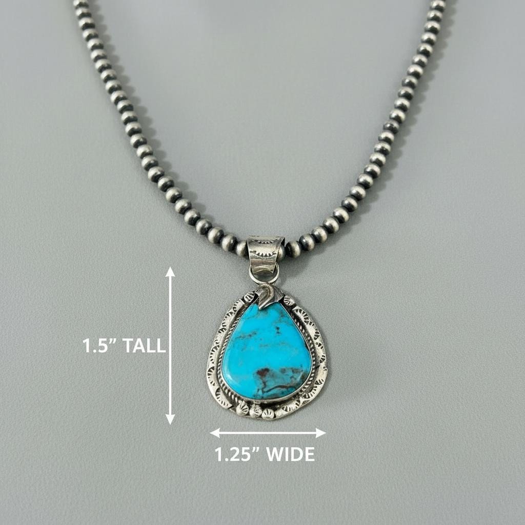 Experience the soulful charm of Southwest jewelry with this handmade Southwestern pendant, a true gift for her that embodies craftsmanship. Featuring genuine 925 sterling silver and vibrant Kingman turquoise, this sterling necklace is a timeless piece that celebrates artistry. Each pendant is thoughtfully designed to bring elegance and authenticity to your collection.