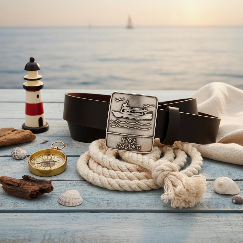 Discover the perfect blend of rugged charm and refined elegance with our nautical style belt, inspired by the iconic Fire Island lighthouse. Crafted from full grain leather, this accessory embodies timeless durability and sophisticated design. Whether you prefer the rich hues of British tan, dark brown, or classic black leather, this belt makes an exceptional gift for him or a distinguished addition to any wardrobe.