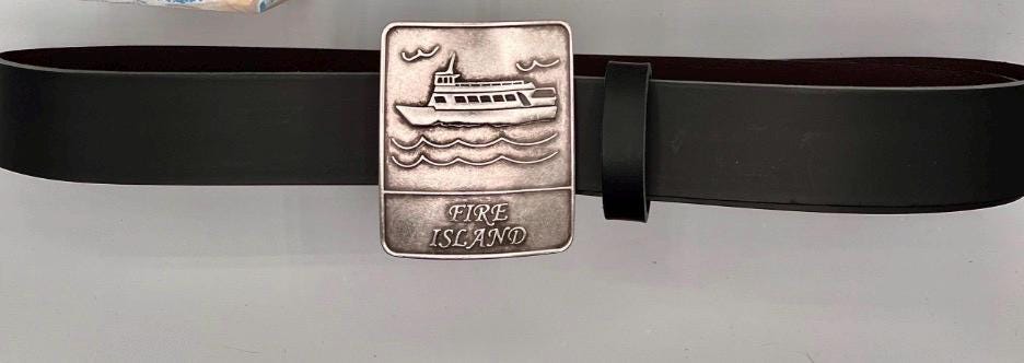 - Features a silver plated pewter buckle showcasing a distinctive nautical Fire Island lighthouse design
