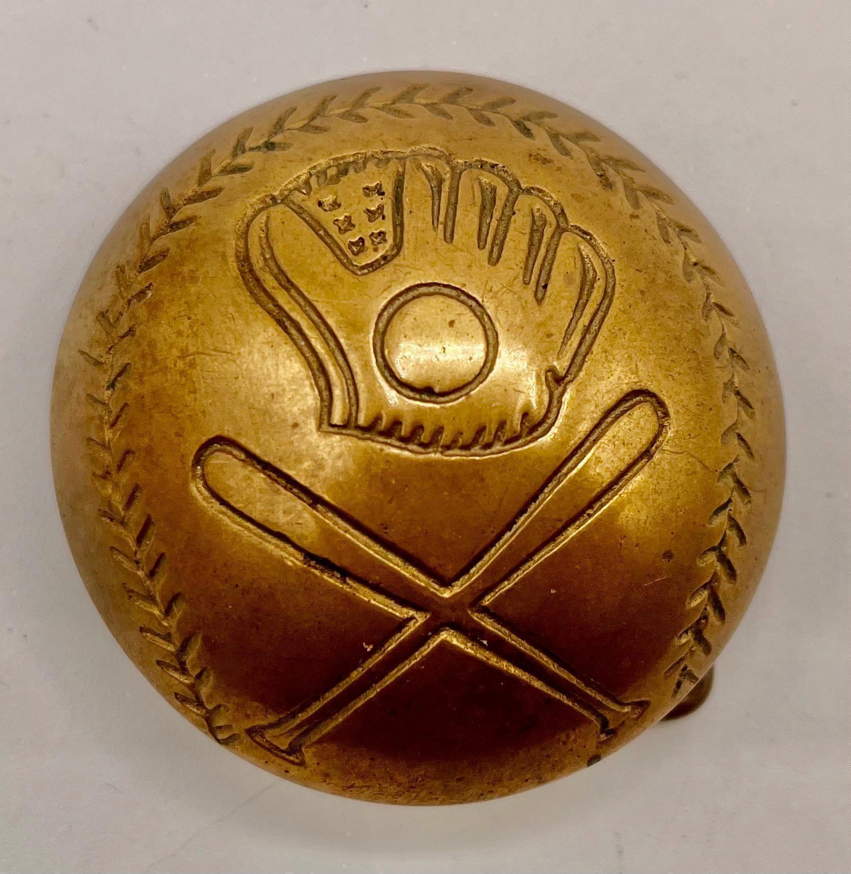 - Vintage brass baseball belt buckle featuring intricate detailing