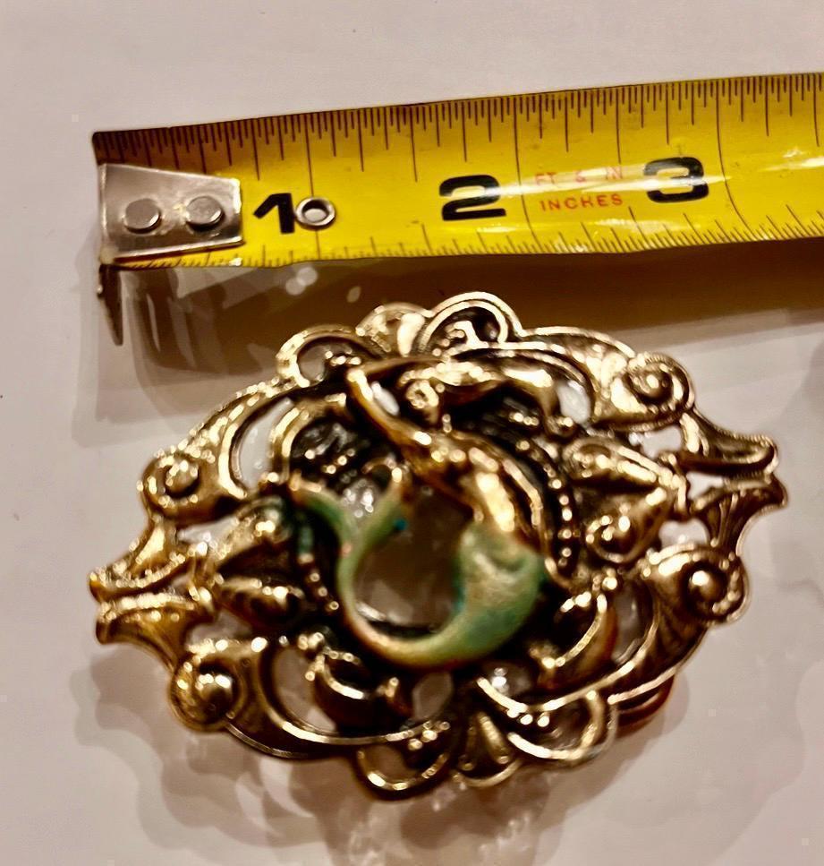 - Solid brass buckle featuring a detailed mermaid motif handcrafted by Richard Kaish