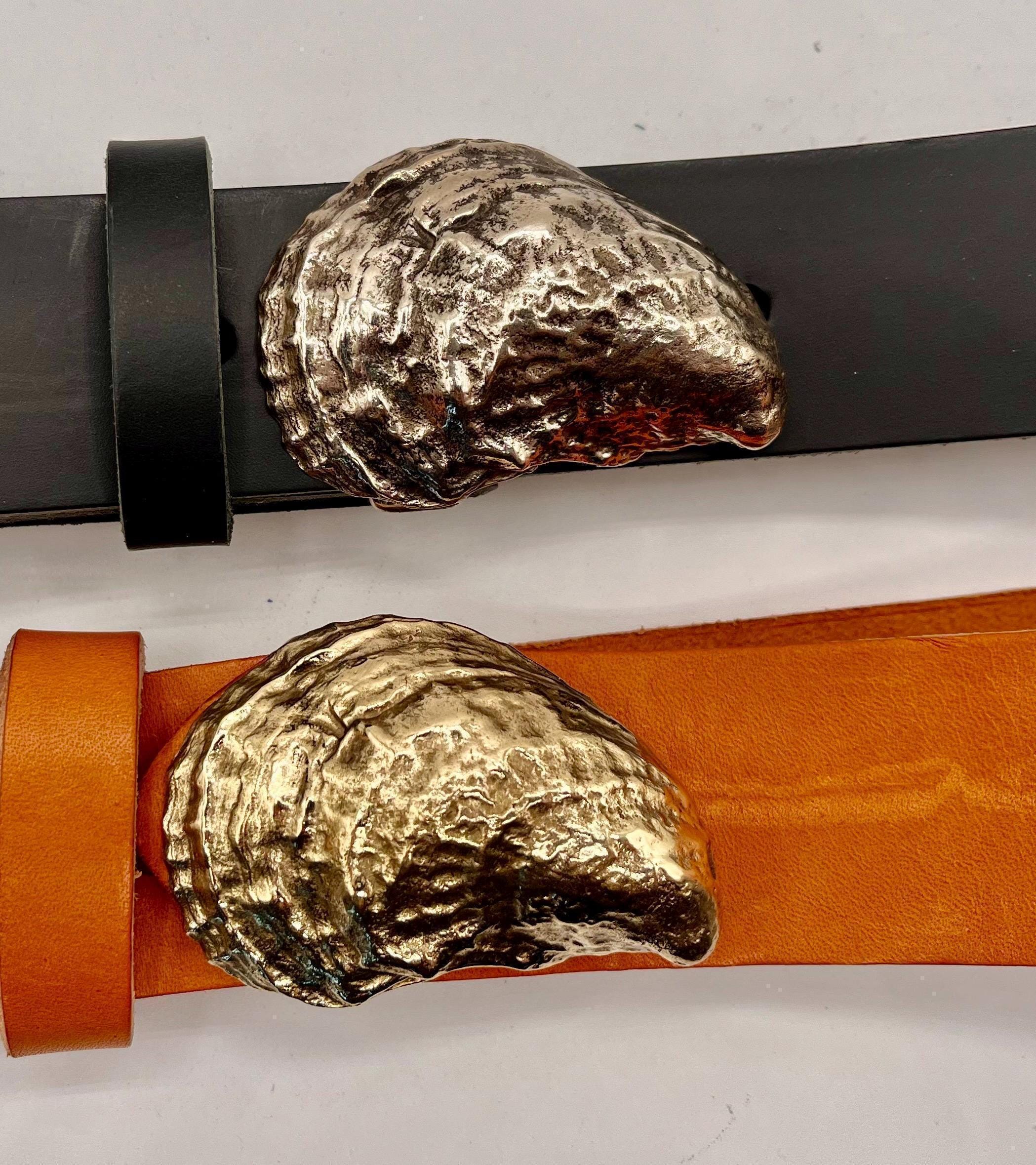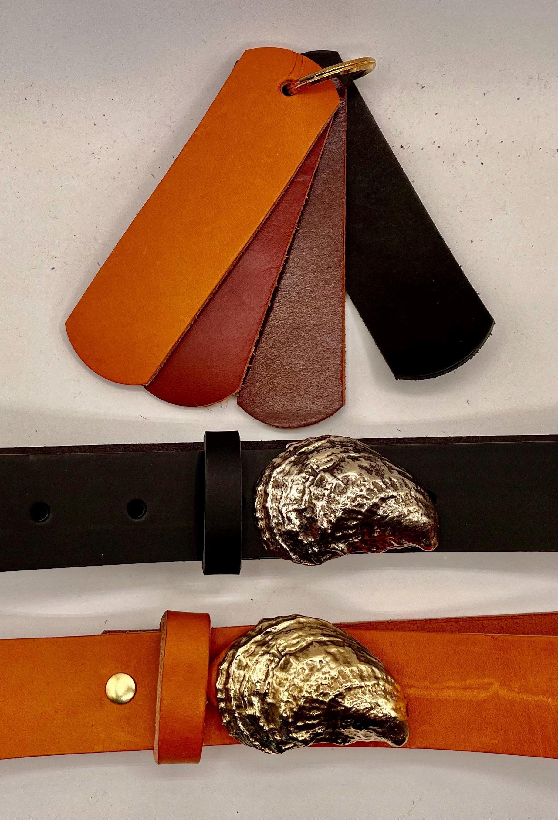 Experience the spirit of coastal heritage with this artisan-crafted belt, inspired by the iconic Blue Point Oyster and shaped by the skilled hands of a Cape Cod silversmith. Featuring a wearable art buckle forged by Bernard Kelly, this piece beautifully merges nautical style with timeless craftsmanship. Crafted from premium Bonfe British tan leather, it brings a touch of coastal culture to any wardrobe.
