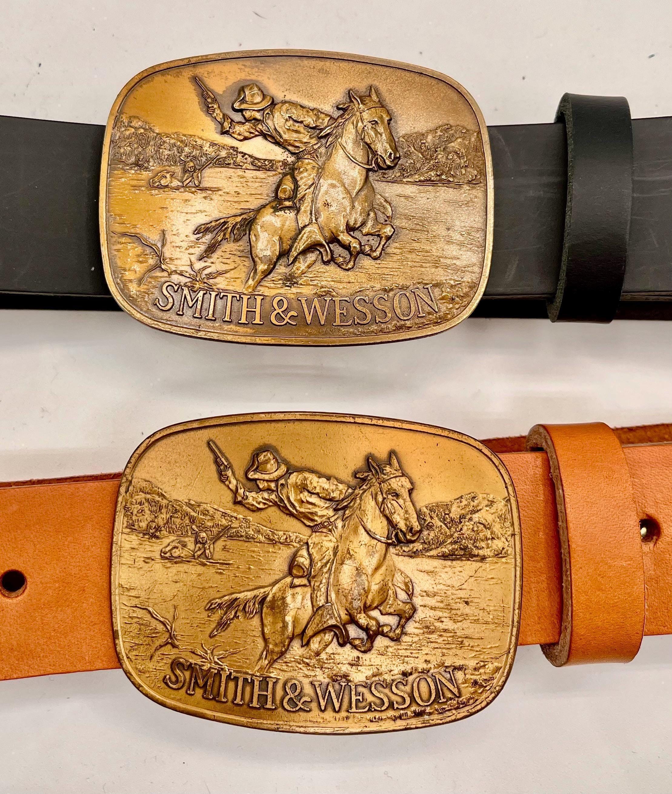 - Solid brass buckle inspired by Smith & Wesson's classic "The Hostiles" trophy design from over thirty years ago