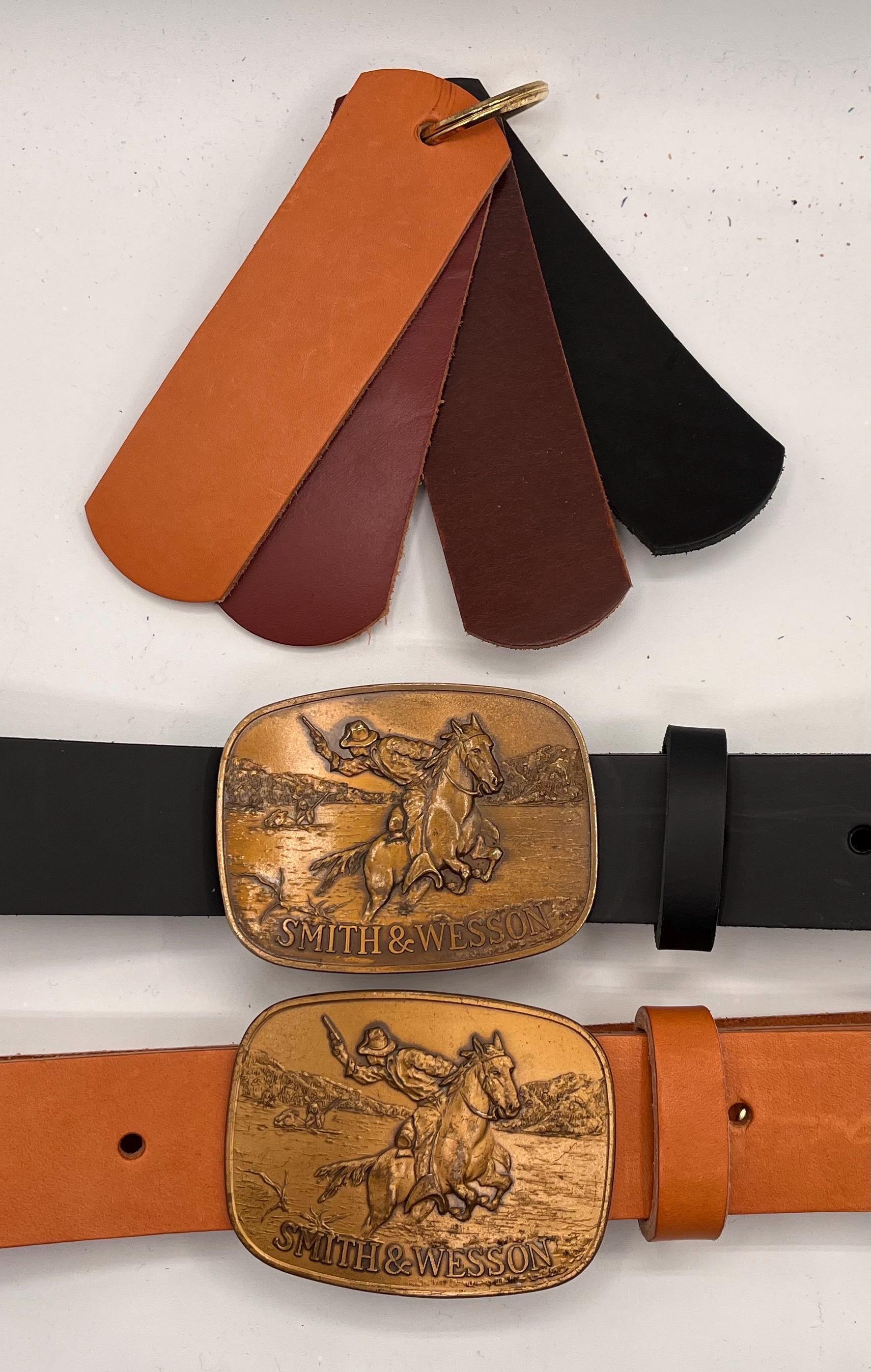 Experience the perfect blend of rugged vintage charm and meticulous craftsmanship with this solid brass trophy buckle, inspired by the legendary Smith Wesson belt designs. Paired with a custom cowhide belt, this accessory embodies Western style buckle tradition while appealing to gun enthusiasts who appreciate a retro firearm buckle with authentic character. Choose from rich British tan, dark brown, or black leather options to express your unique style with a piece that honors American artisanal skill.