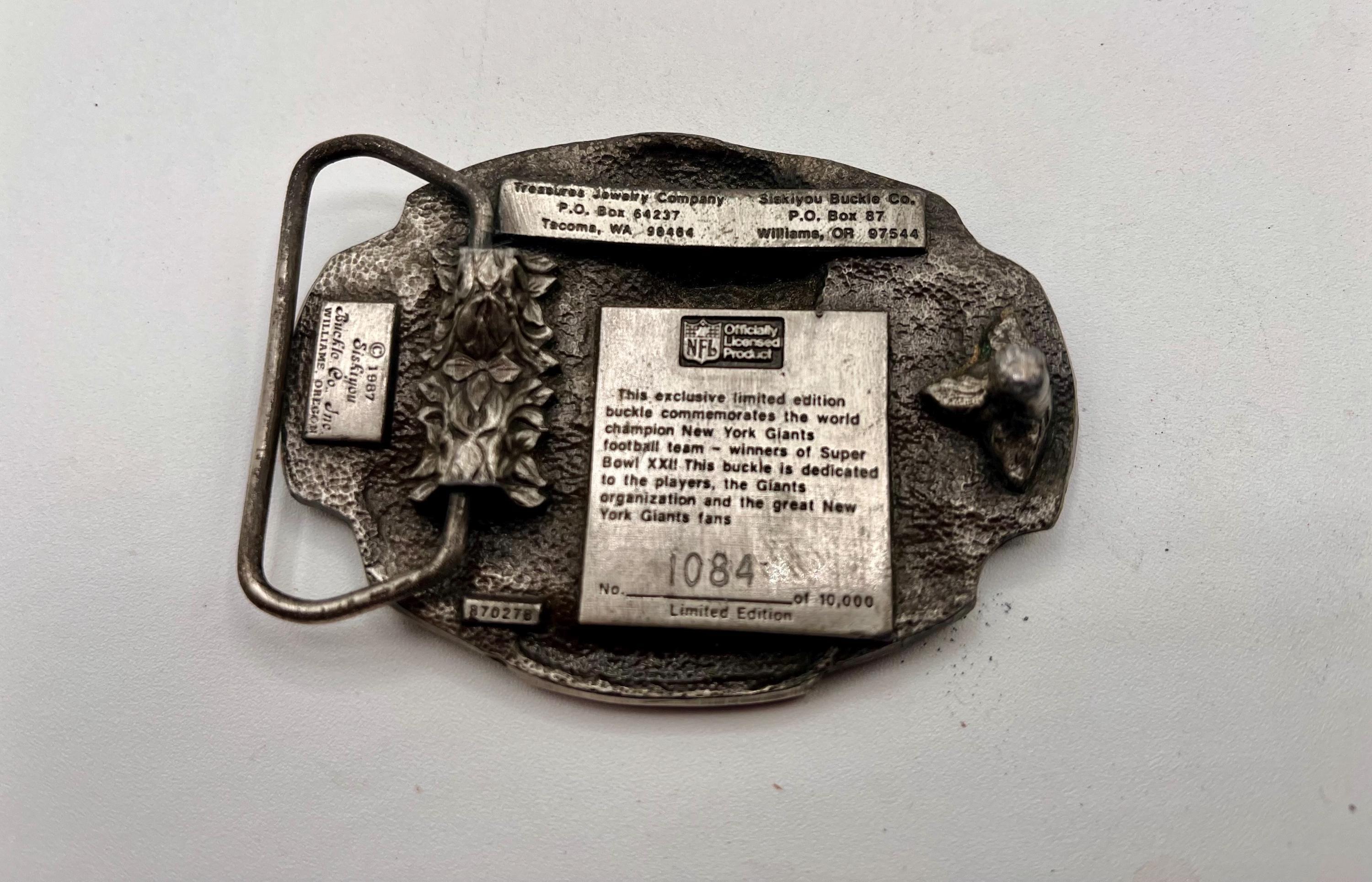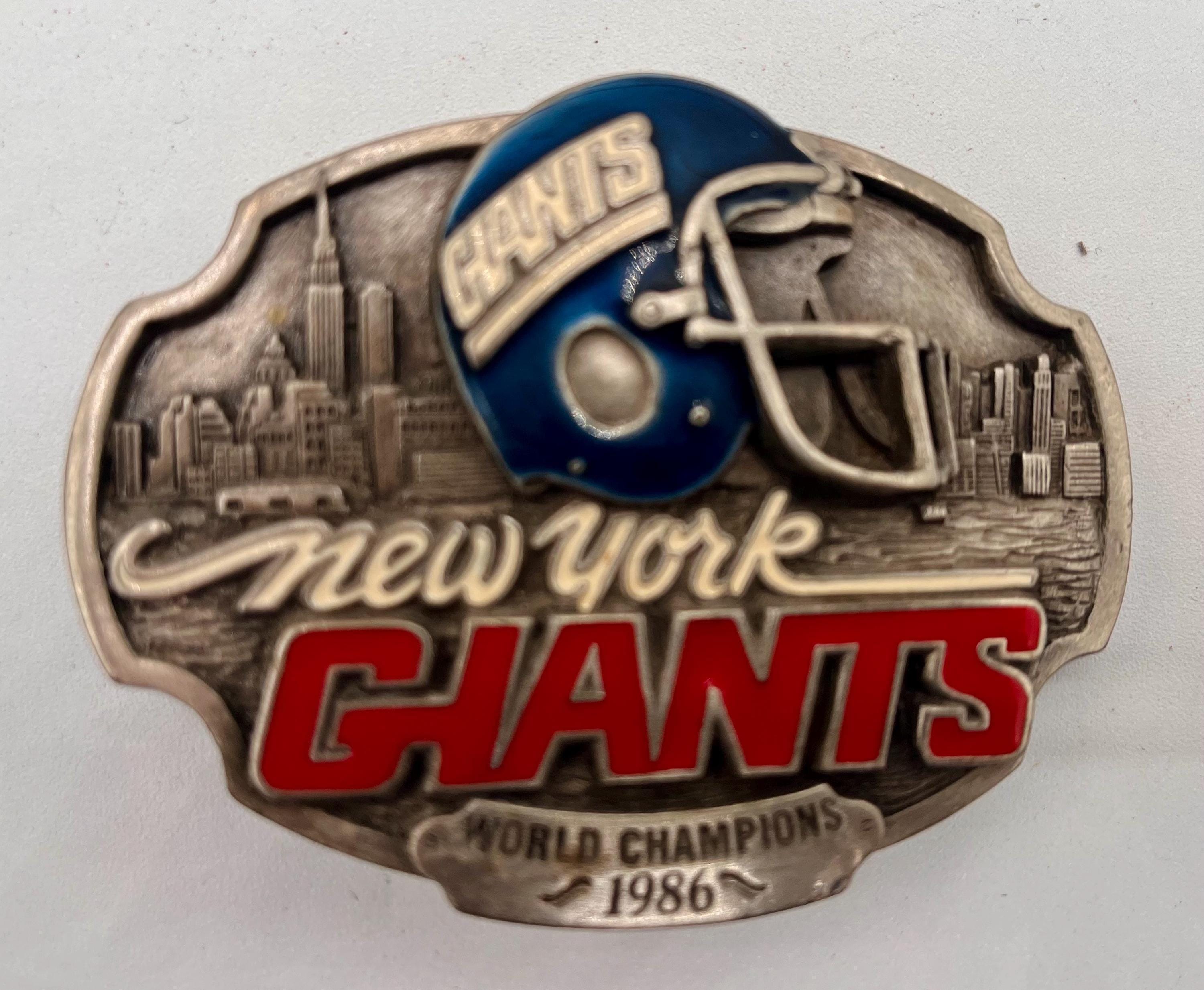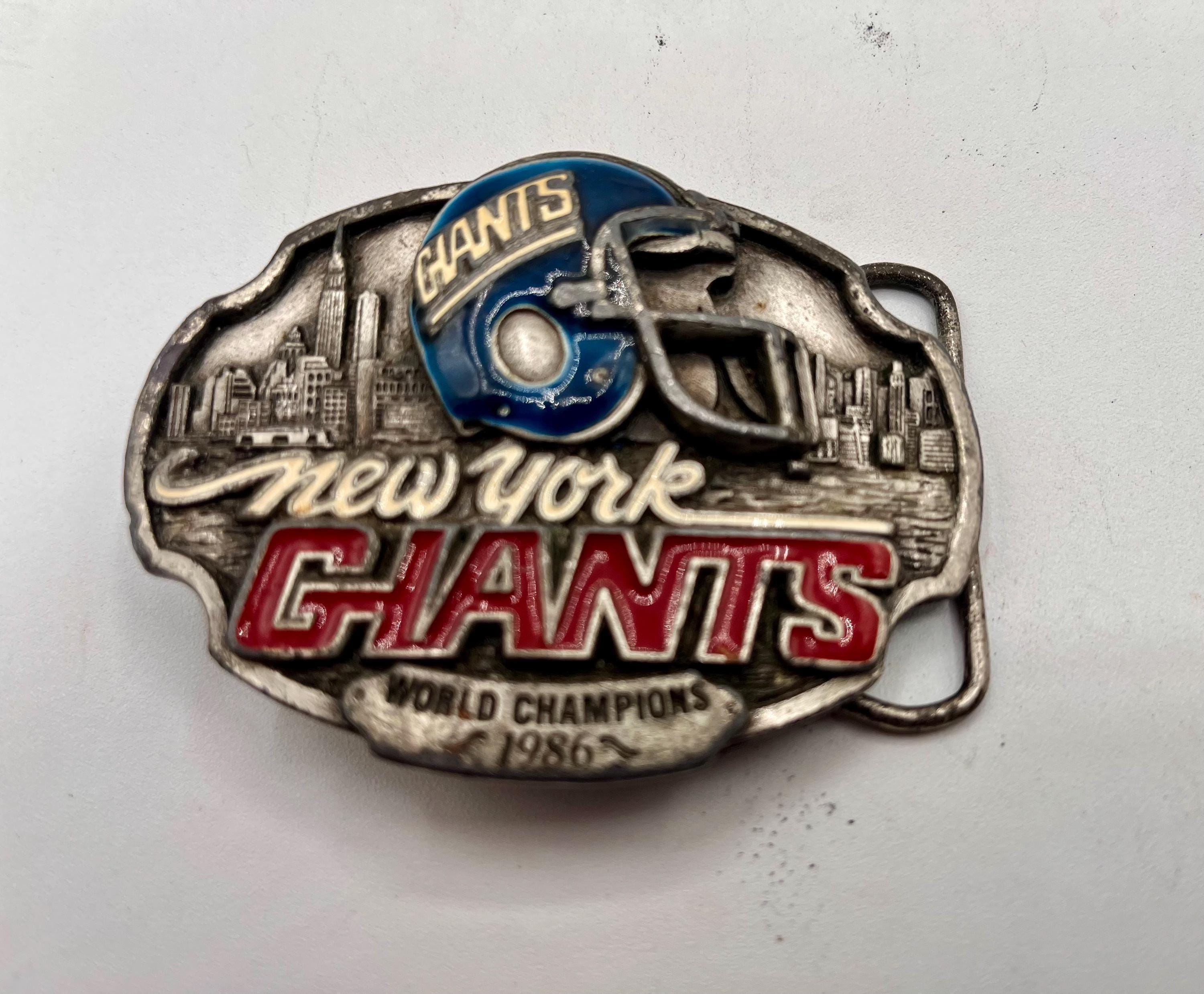 - Vintage New York Giants pewter buckle celebrating the 1986 World Championship