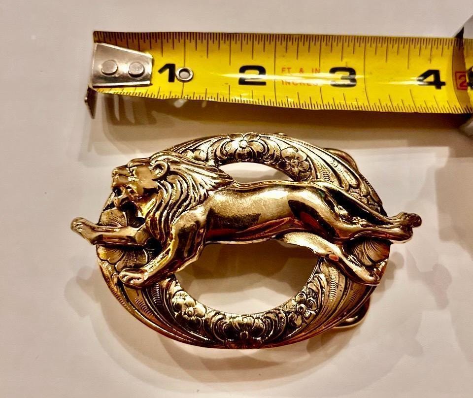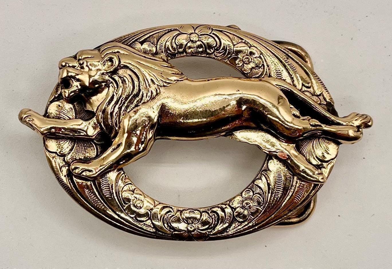 Experience the captivating strength and elegance of our brass running lion belt buckle, a true statement piece inspired by the bold animal motif of a majestic lion in motion. Crafted with care by renowned Cape Cod silversmith Richard Kaish, this unique belt buckle combines timeless design with durable brass construction, making it an exceptional leather belt upgrade for those seeking both style and substance. Whether for yourself or a gift for him, this running lion motif adds a touch of rustic leather style and nautical charm to any collection.