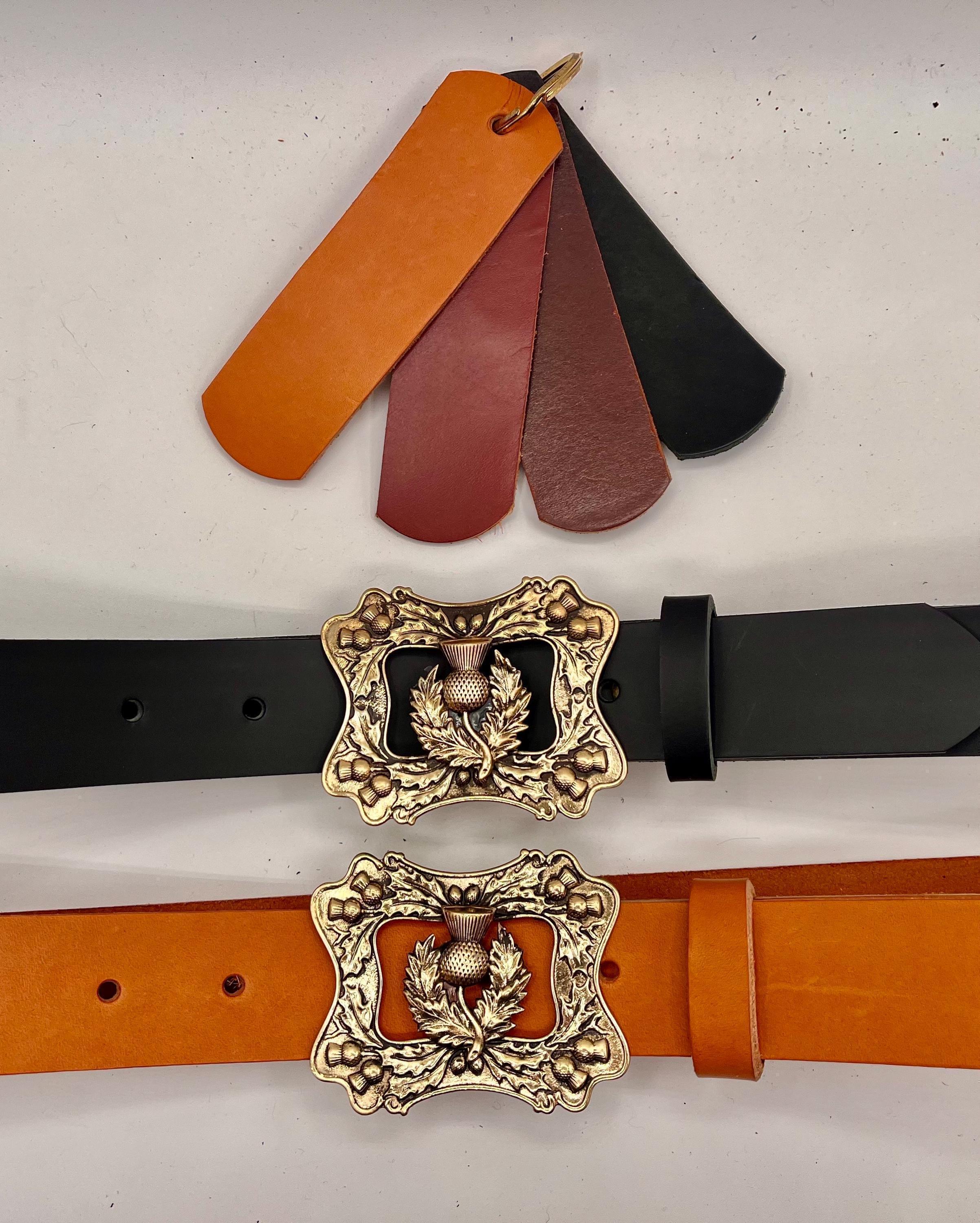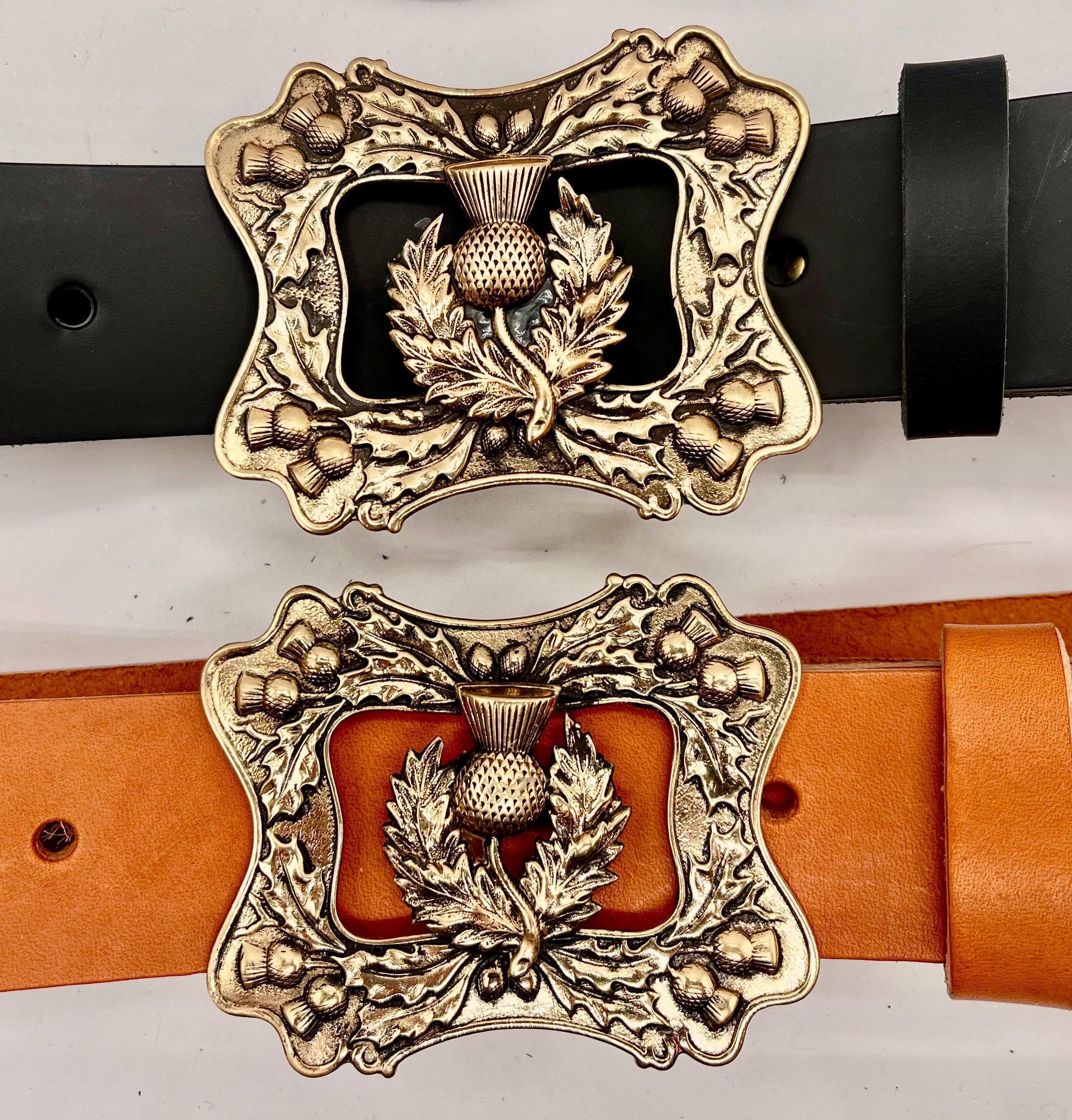 Embrace the spirit of Scotland with this exquisite thistle belt buckle, a true emblem of heritage and craftsmanship. Handmade by Richard Kaish, this piece pairs beautifully with a custom leather belt available in British tan, dark brown, or black, blending tradition with modern style. Whether worn as a meaningful accessory or given as a thoughtful gift, this thistle belt buckle showcases Scottish pride with elegance and durability.