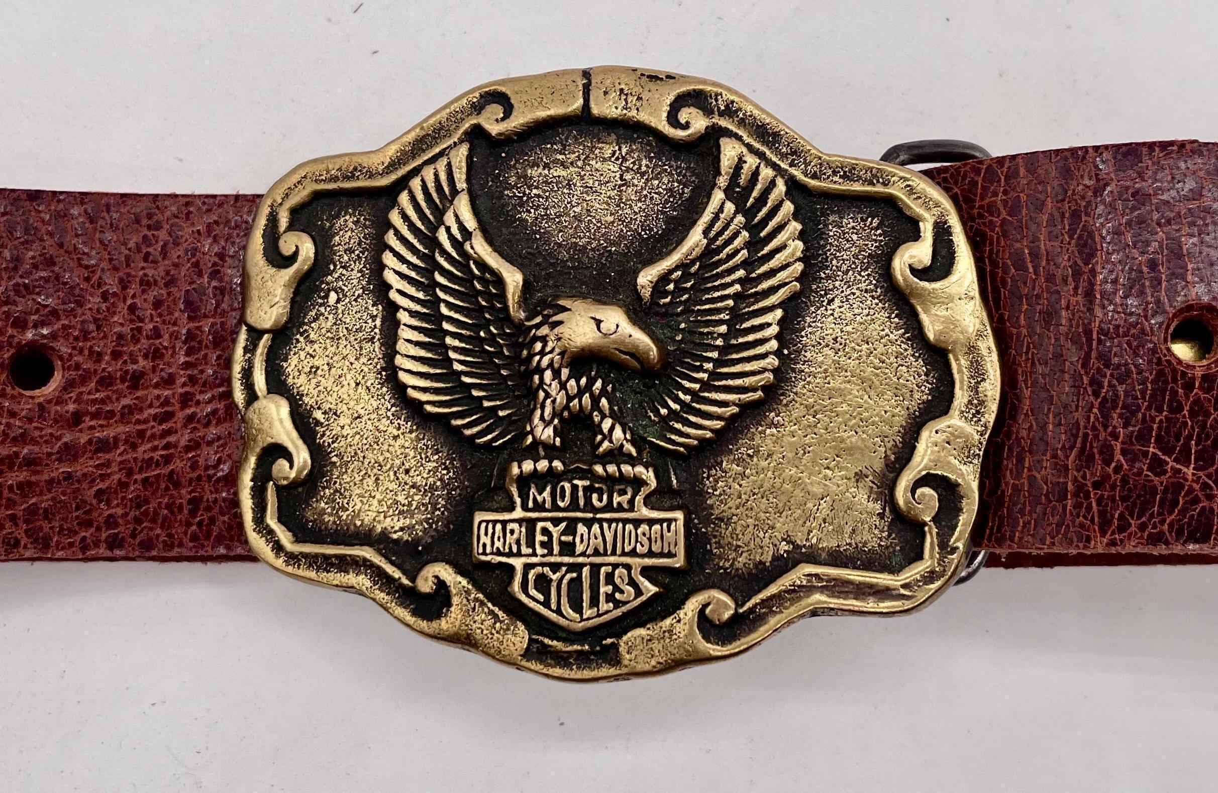 - Vintage solid brass Harley Davidson buckle featuring unique design variations
