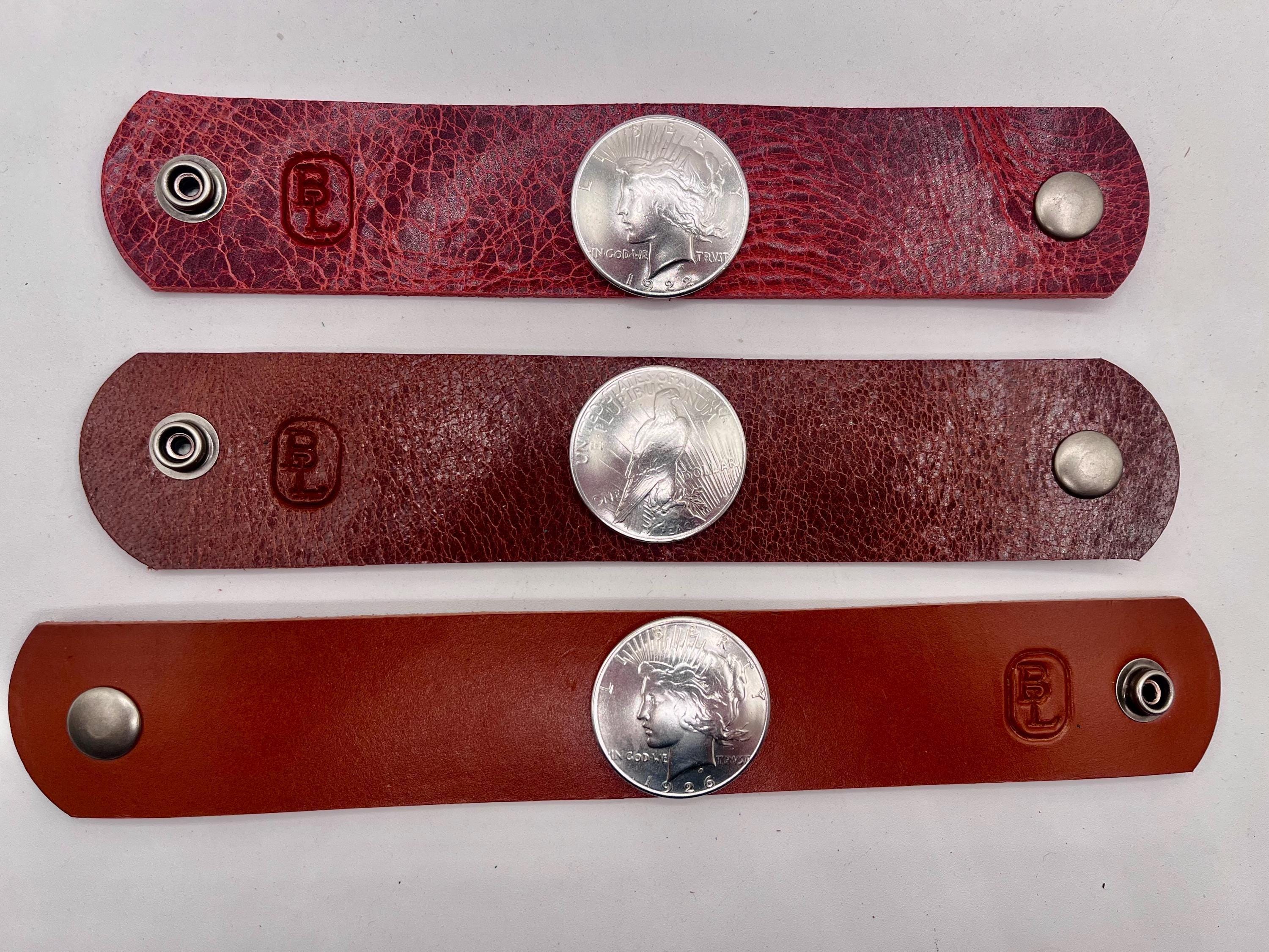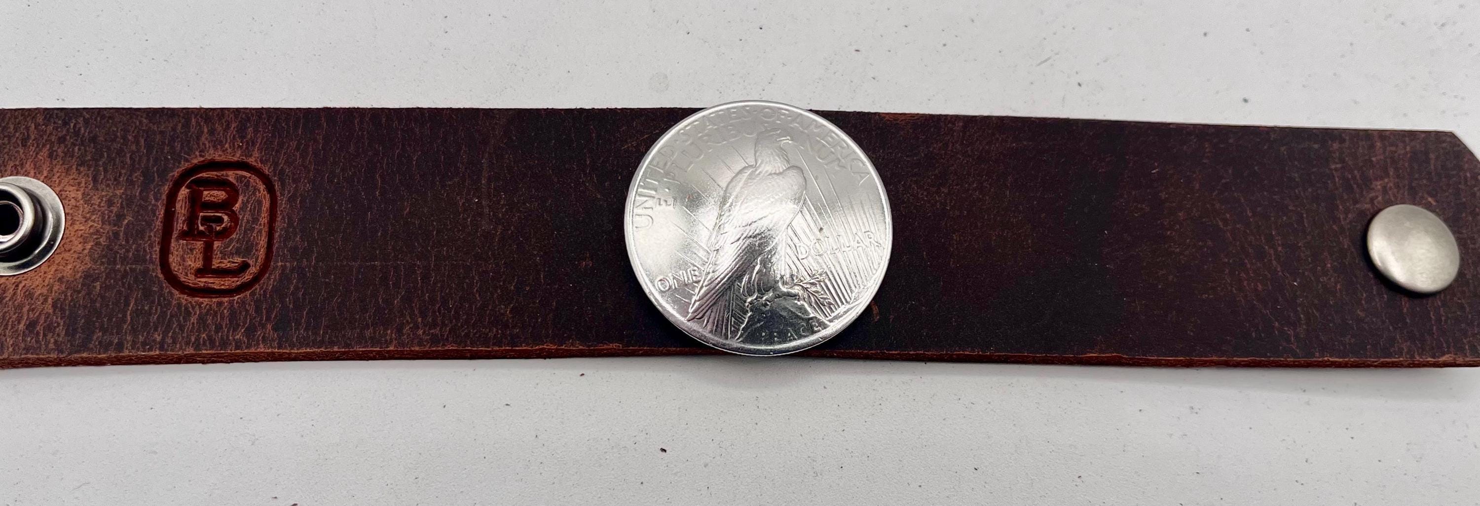 Embrace a piece of history with this handcrafted leather cuff bracelet, featuring a genuine Peace silver dollar set on rich crazy horse leather. Designed for those who appreciate unique coin jewelry and rugged durable style, this bracelet blends heritage with contemporary craftsmanship. Each piece tells a story of timeless elegance and personalized style, perfect for casual wear or as a thoughtful gift for him.