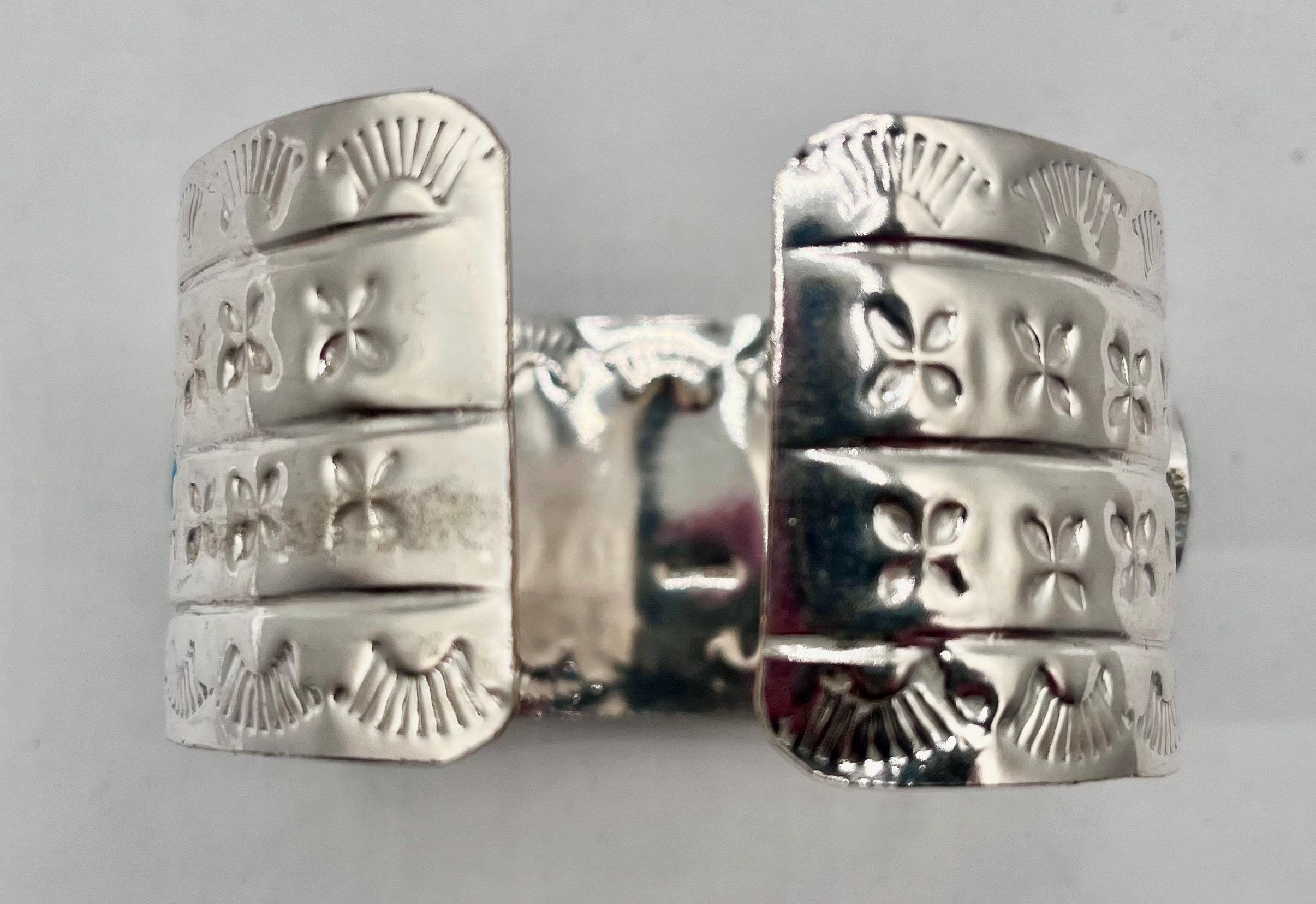 Discover the essence of the Southwest with this striking sterling cuff bracelet, beautifully adorned with five genuine Morenci turquoise stones. This bold color bracelet captures the vibrant spirit of desert landscapes, making it a perfect wearable art piece for those who cherish unique, handcrafted jewelry. Designed with layering in mind, it seamlessly complements other pieces in your collection, enhancing any style with its bohemian charm.
