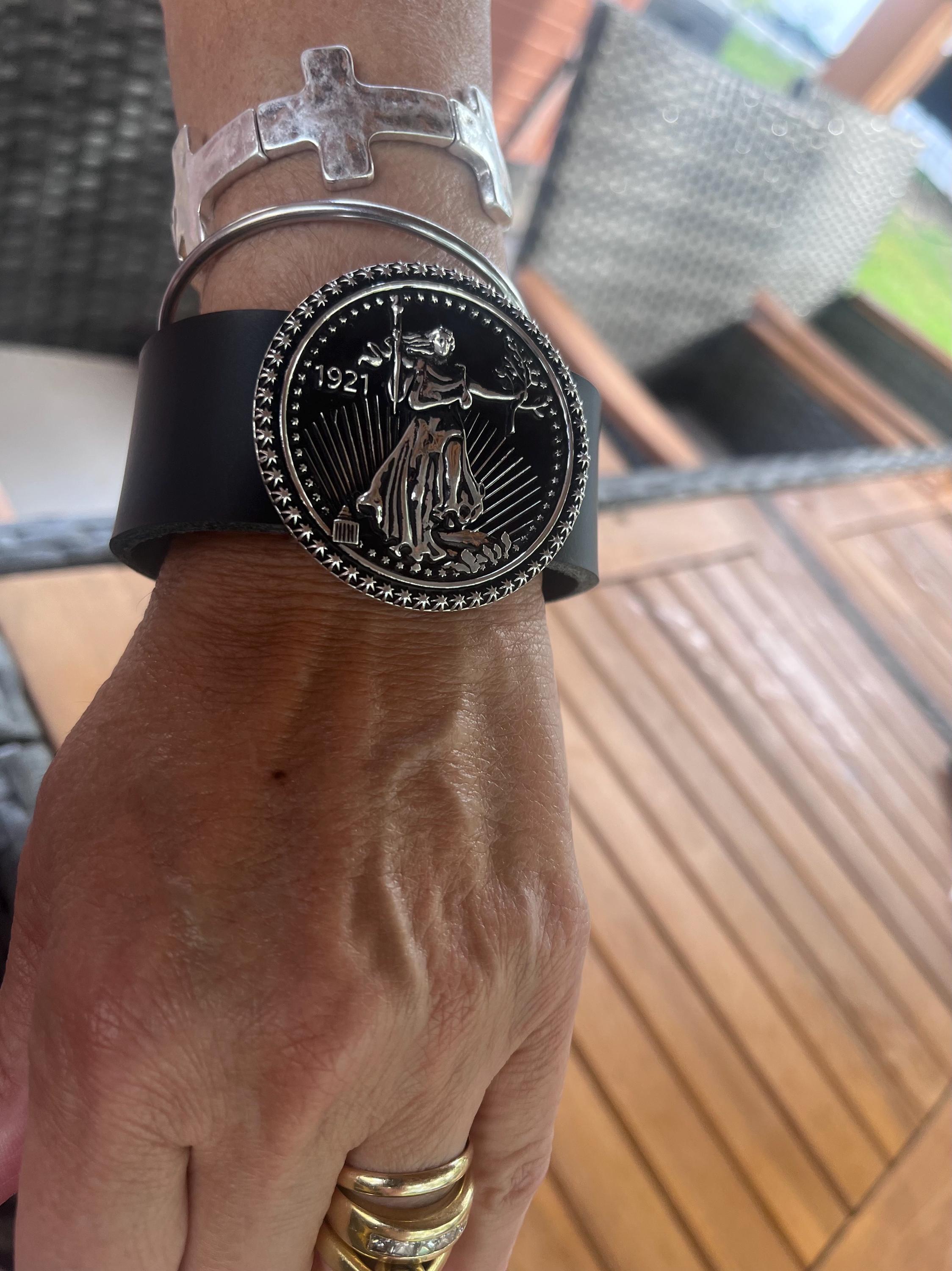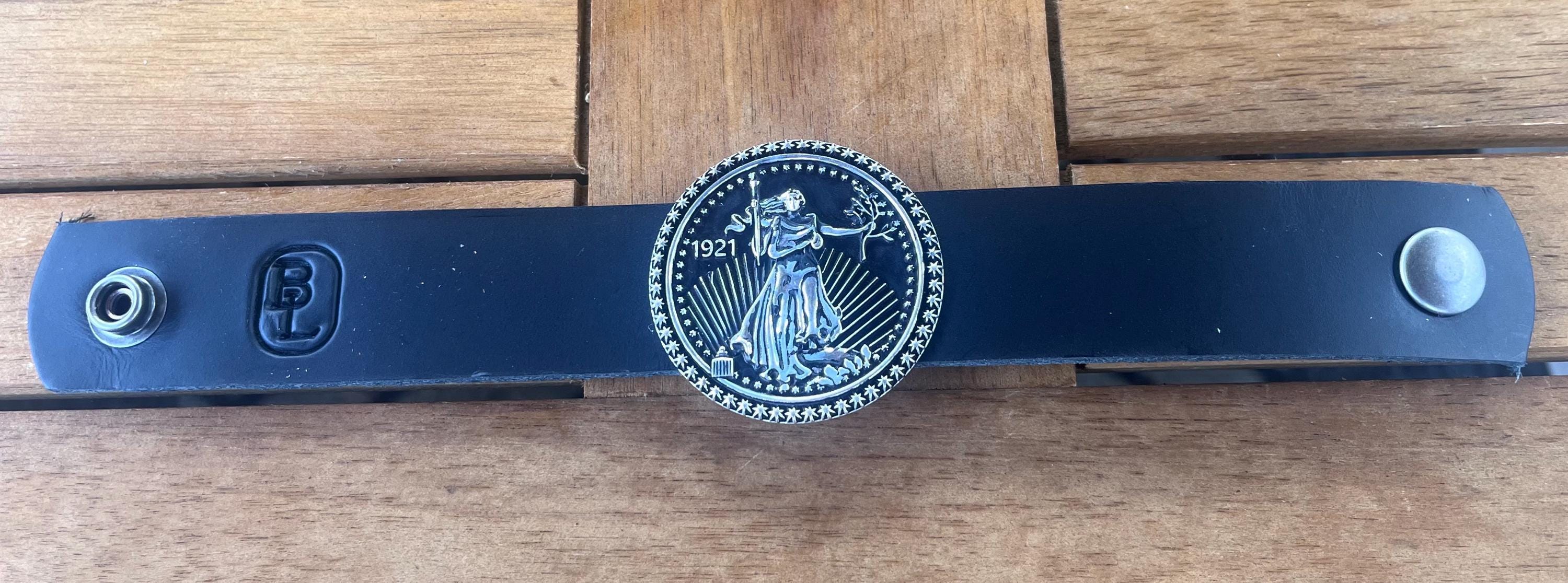 Discover the artistry behind this unique brass concho leather cuff, inspired by the iconic Saint Gaudens gold design. Handmade by skilled artisans at Bonfe Leather Workshop in Patchogue NY, this piece blends rustic brass jewelry charm with authentic Western style cuff craftsmanship. Perfect as a unique leather gift, it captures both heritage and elegance in one wearable treasure.