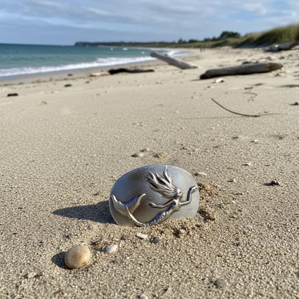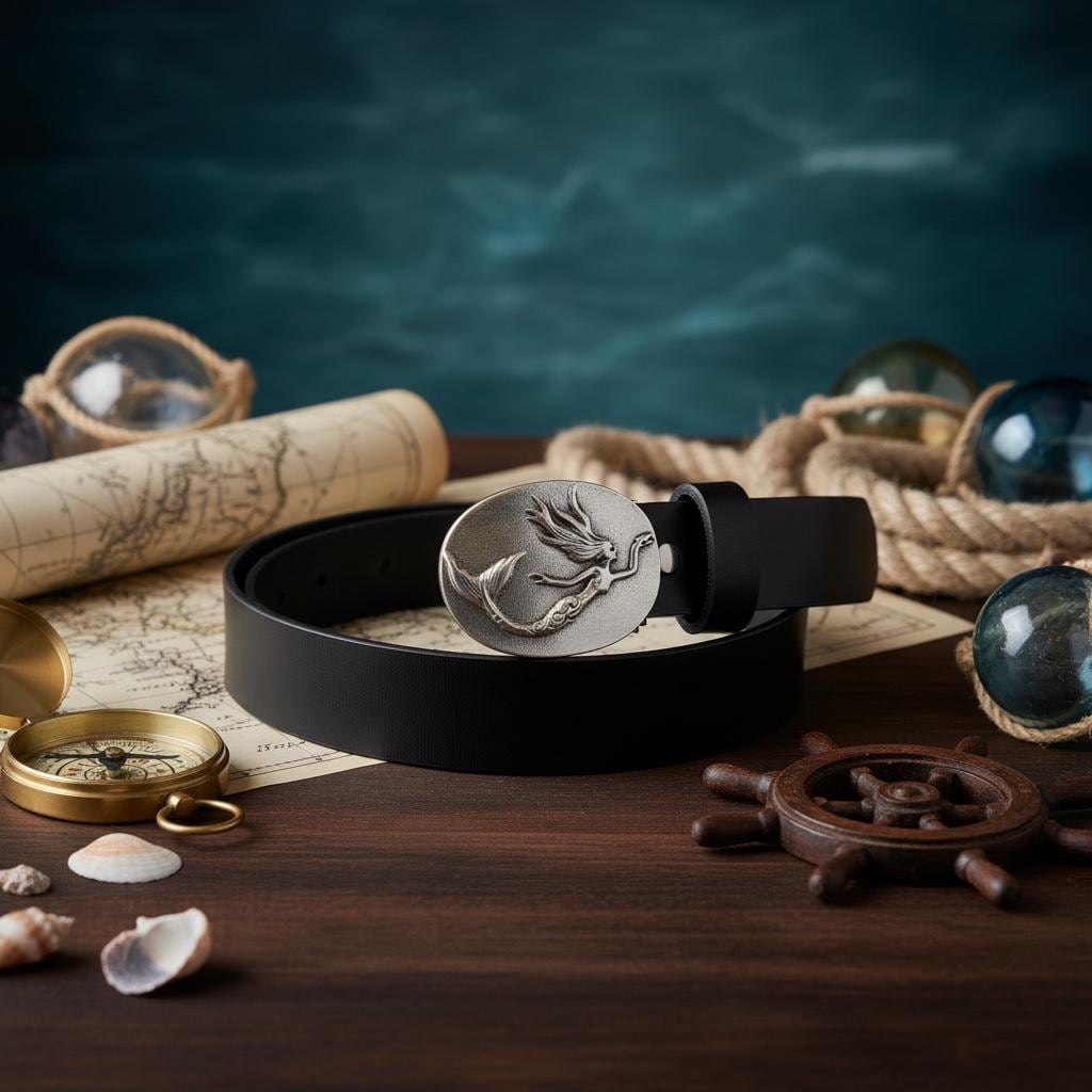 - Unique mermaid belt buckle evokes beach vibes and coastal charm