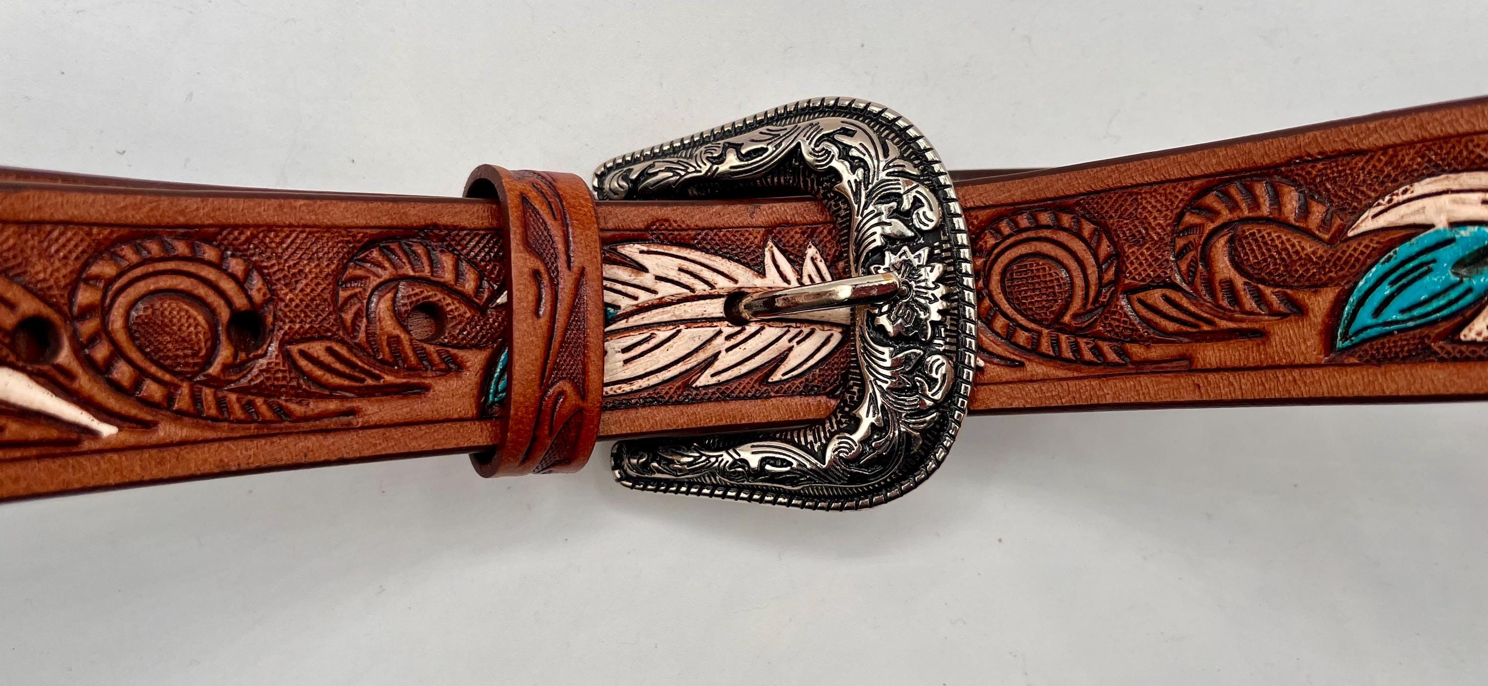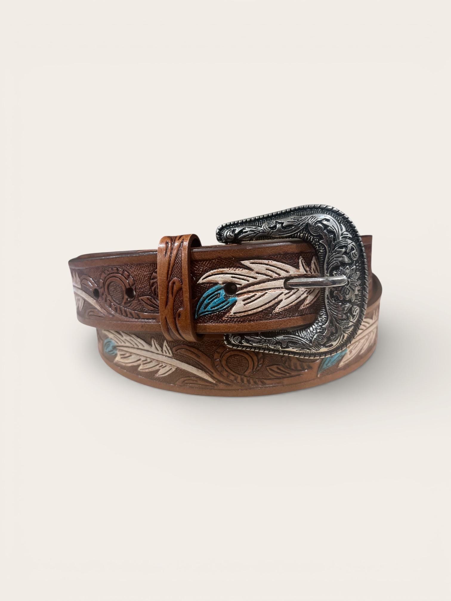 Experience the spirit of the Southwest with this artisan-crafted leather belt, featuring a hand-carved Southwestern feather that brings a unique touch to any outfit. Designed for those who appreciate rustic western wear and custom fit leather accessories, this belt blends tradition with exceptional style. Each piece tells a story of craftsmanship and cultural heritage, making it a standout addition to your wardrobe.