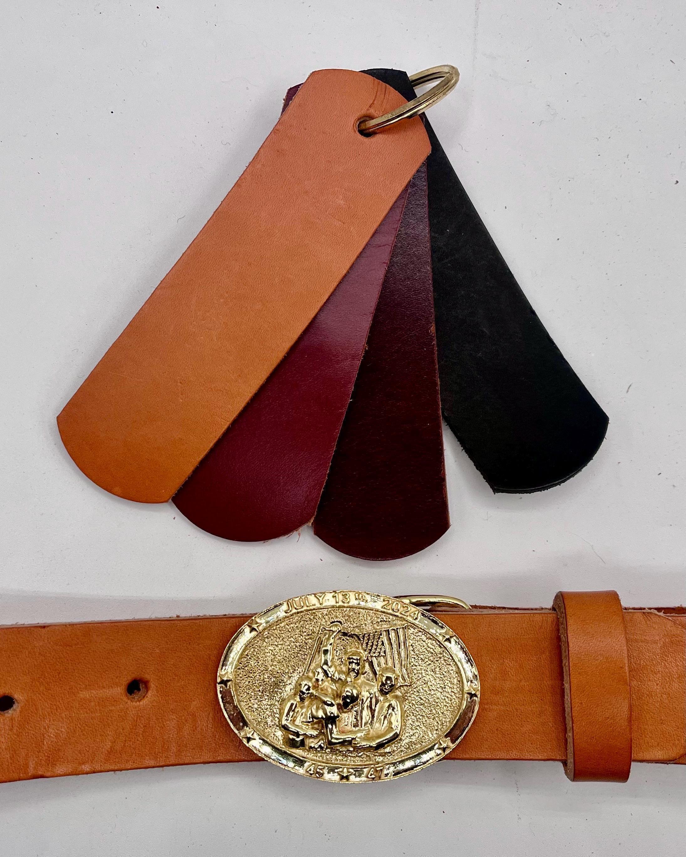Discover the perfect blend of tradition and bold style with this vintage style buckle, crafted for those who appreciate a custom fit waist accessory with rich leather tones. Inspired by the spirit of craftsmanship and the memorable July 13 event, this piece features British tan, chestnut, and dark brown hues that elevate any leather belt for men. Handmade by skilled Patchogue NY artisans, it’s an exceptional Donald Trump gift or a timeless addition to your wardrobe.