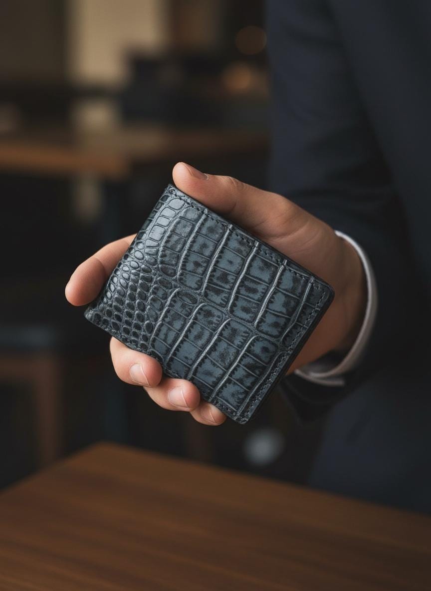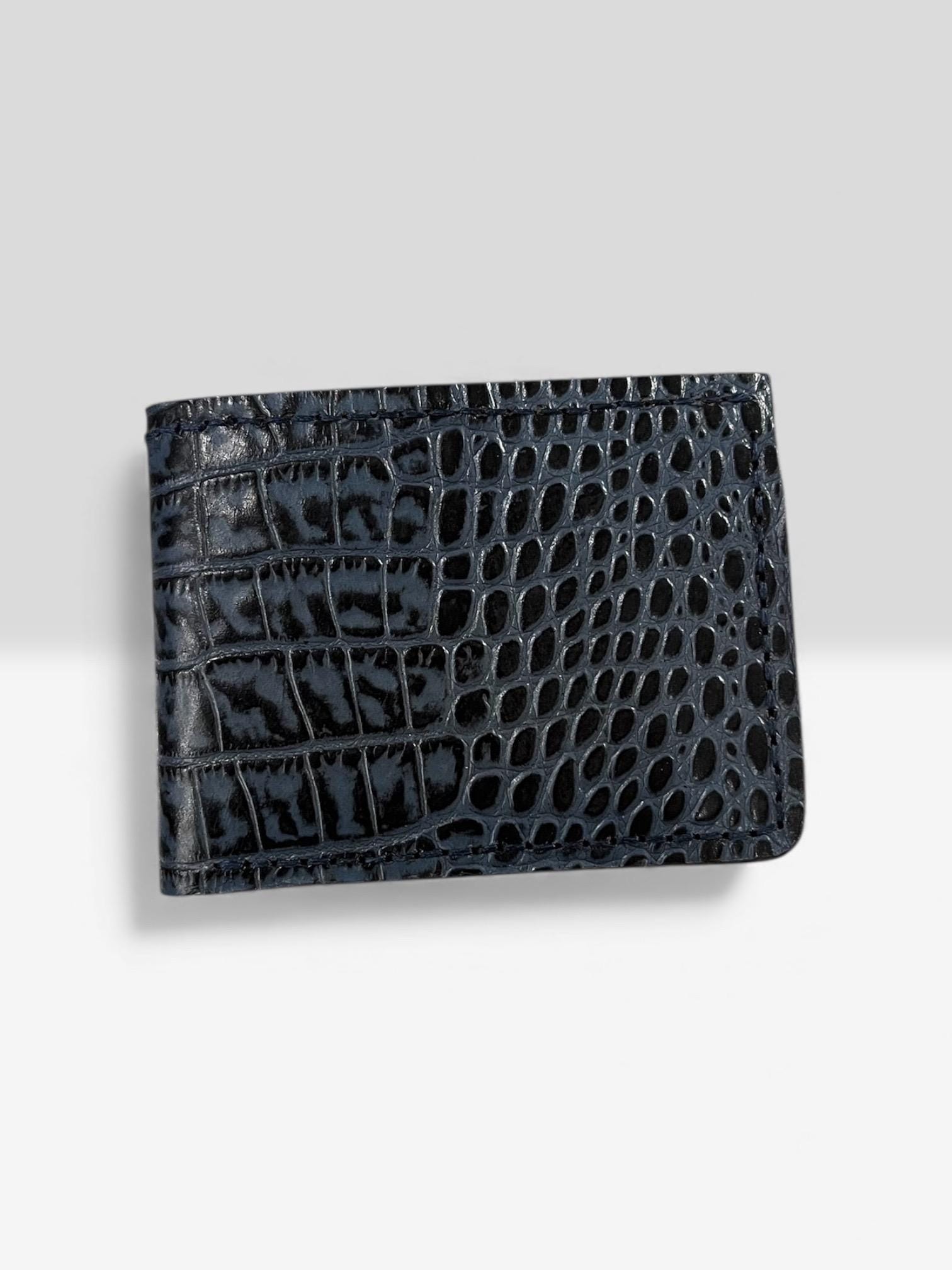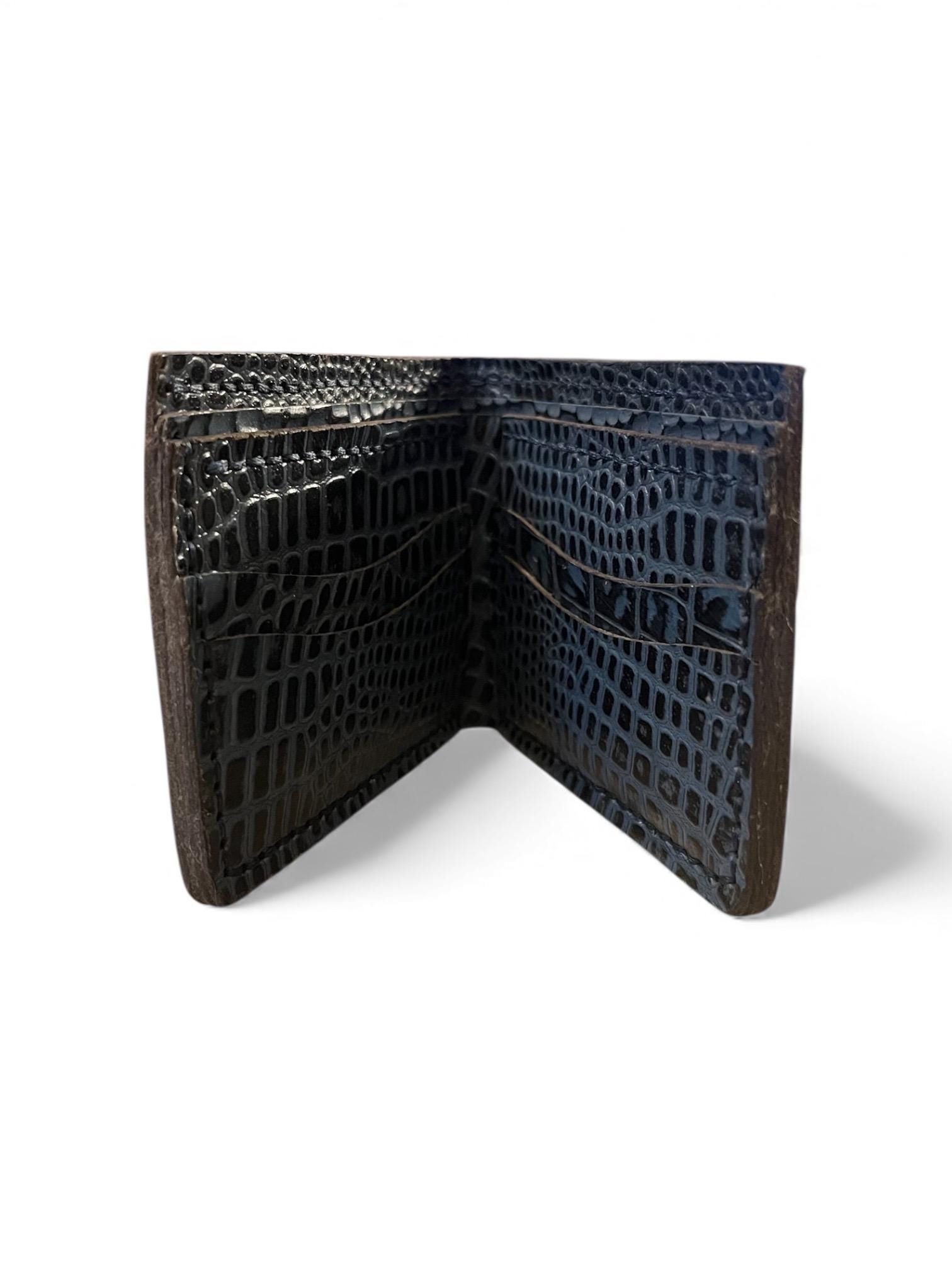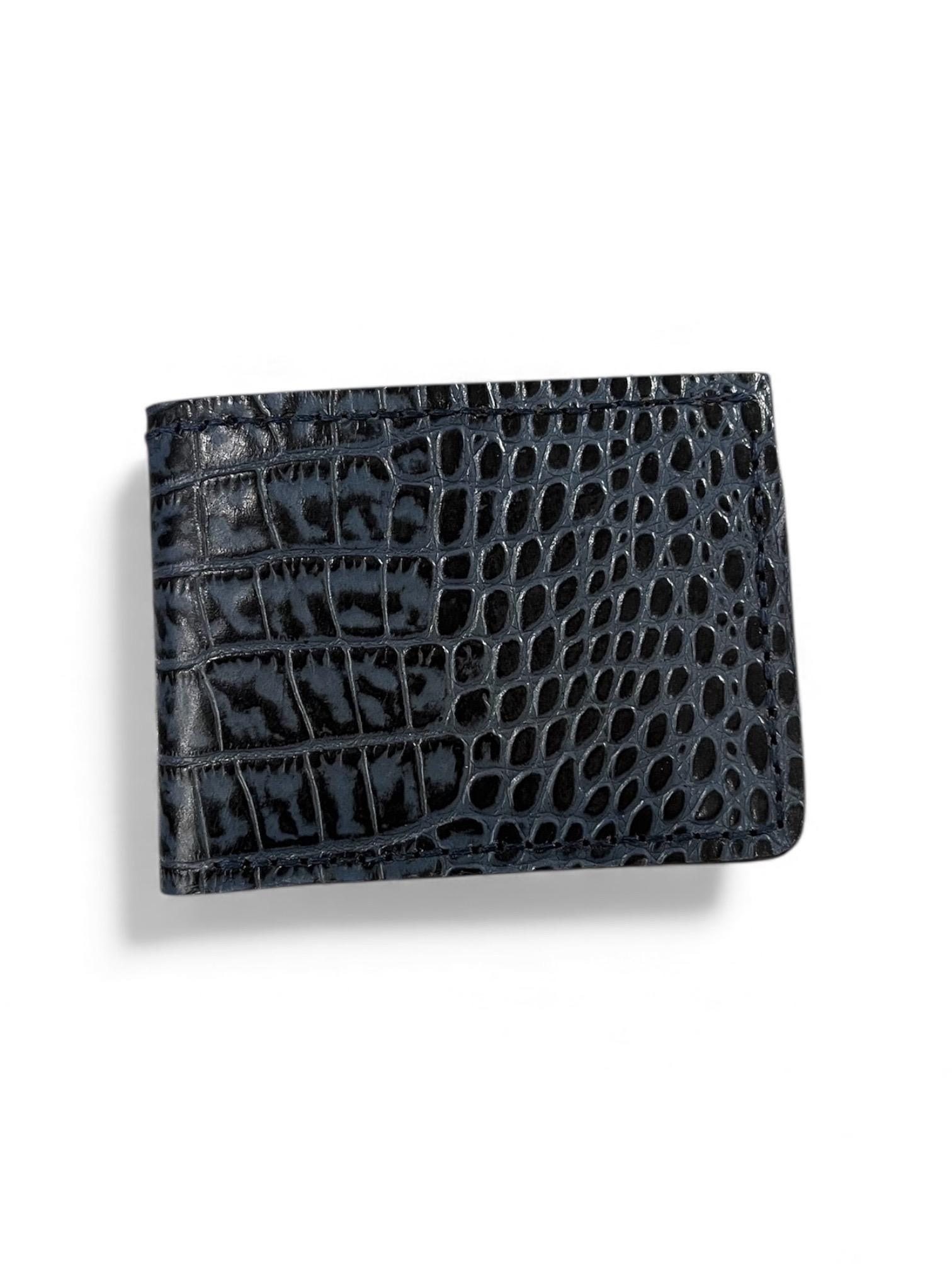 - Crafted from genuine American alligator leather showcasing a unique two tone black design