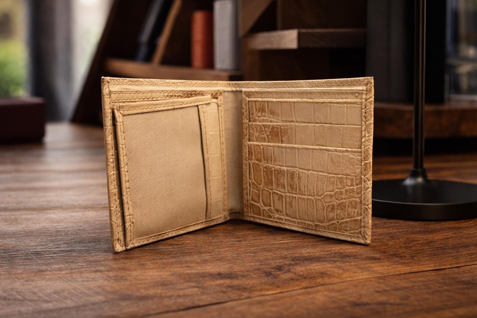Experience the perfect blend of rugged mens billfold durability and refined style with this handmade mens wallet, crafted from genuine Himalayan alligator leather. Designed as a luxury gift for him. This stylish mens wallet tells a story of artisanal excellence and timeless design.