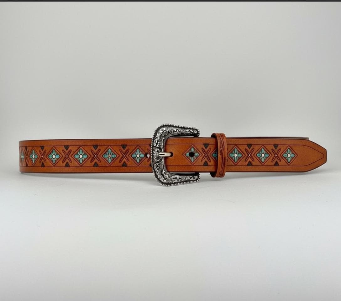 Discover the timeless allure of our artisan crafted belt, where each hand carved pattern tells a story inspired by Navajo heritage. This leather belt diamond design captures the essence of rustic western style while offering a custom fit accessory tailored just for you. Born from the rich tradition of Patchogue, NY, every piece is a unique testament to craftsmanship and cultural artistry.