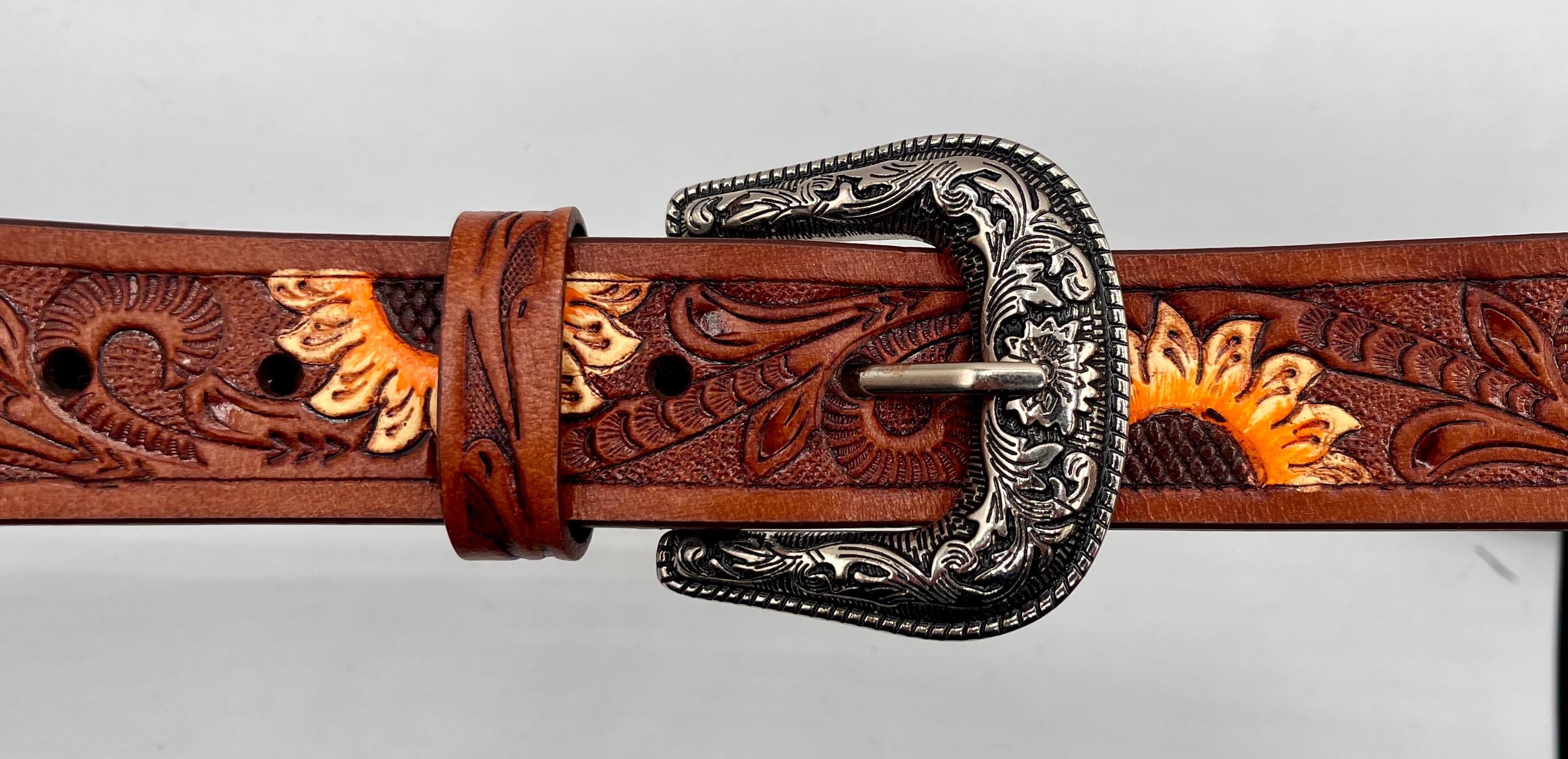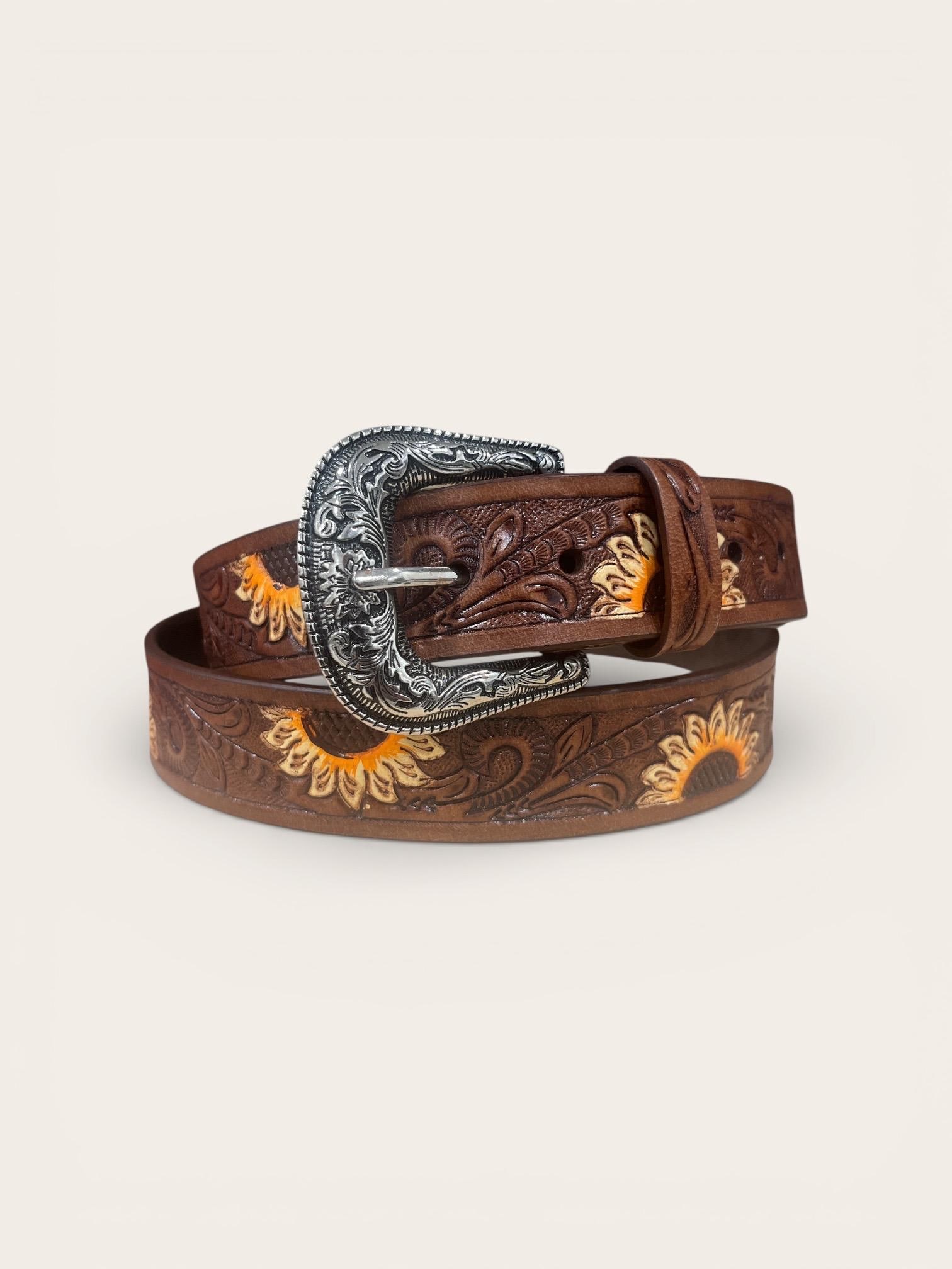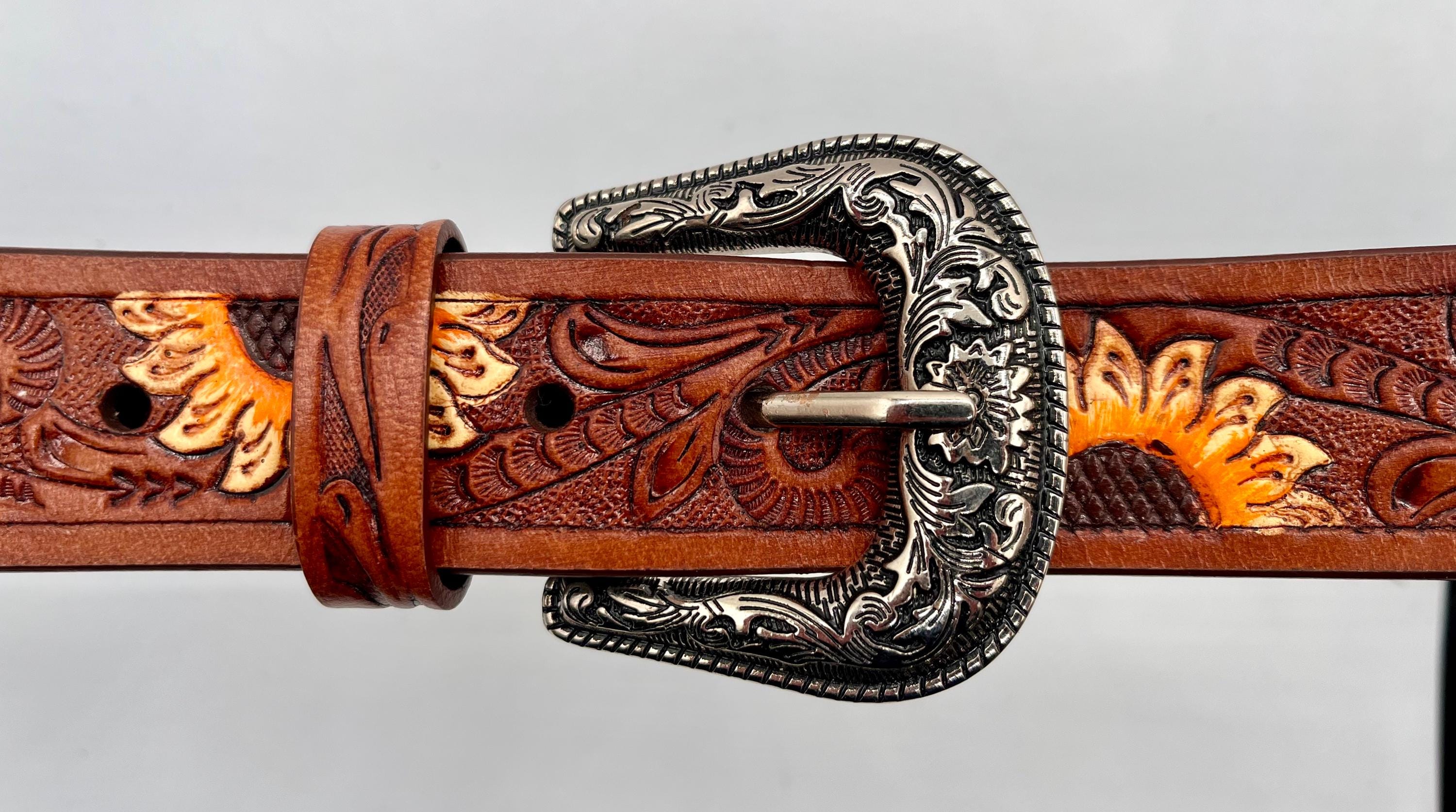 Discover the perfect blend of rustic western style and artisan craftsmanship with this hand-carved sunflower belt. Designed with a genuine leather belt base, this piece brings a unique sunflower motif gift to life, inspired by southwestern aesthetics. Whether you're seeking a stylish durable belt or a custom sizing belt that fits just right, this creation embodies both charm and lasting quality.