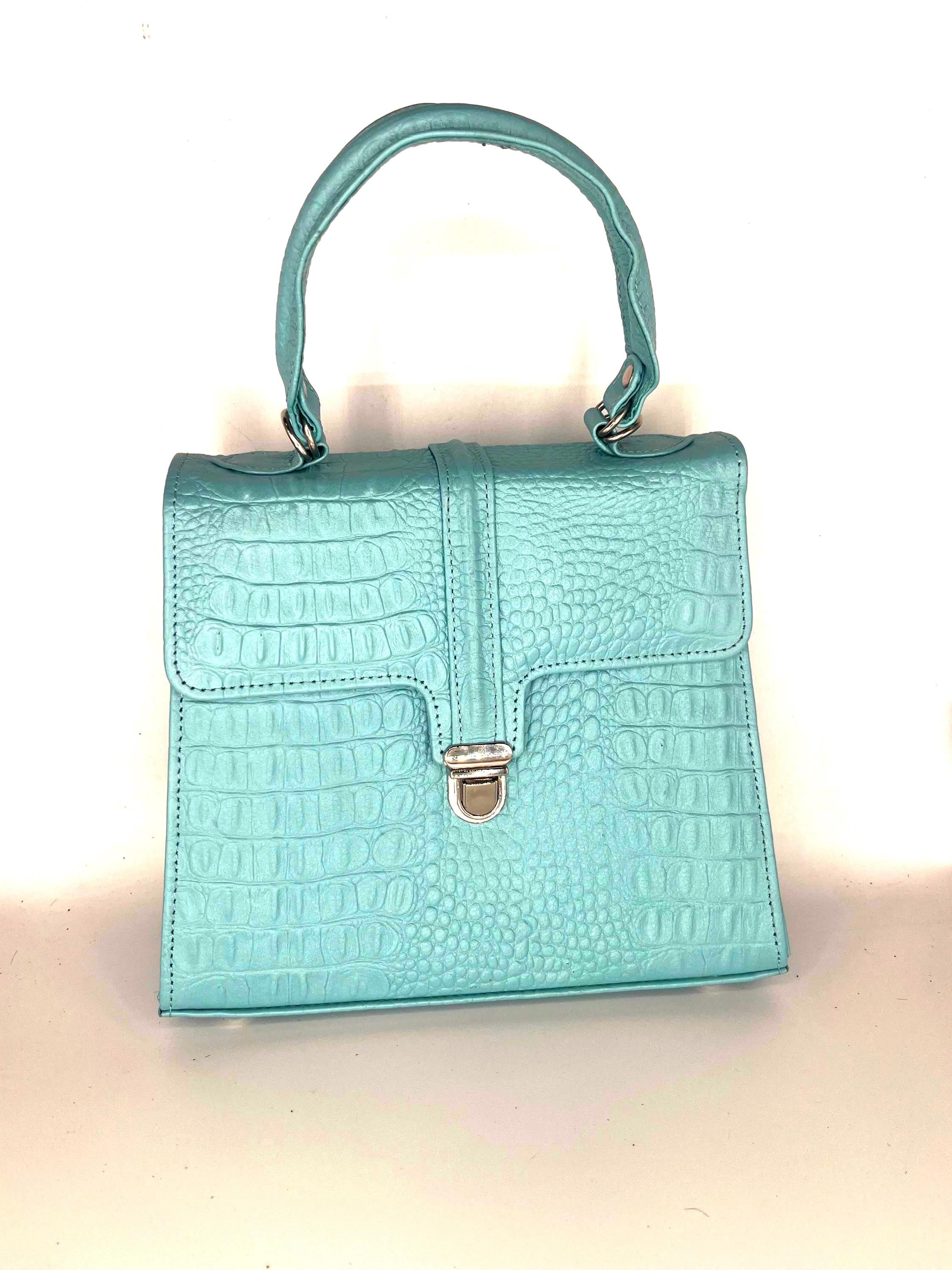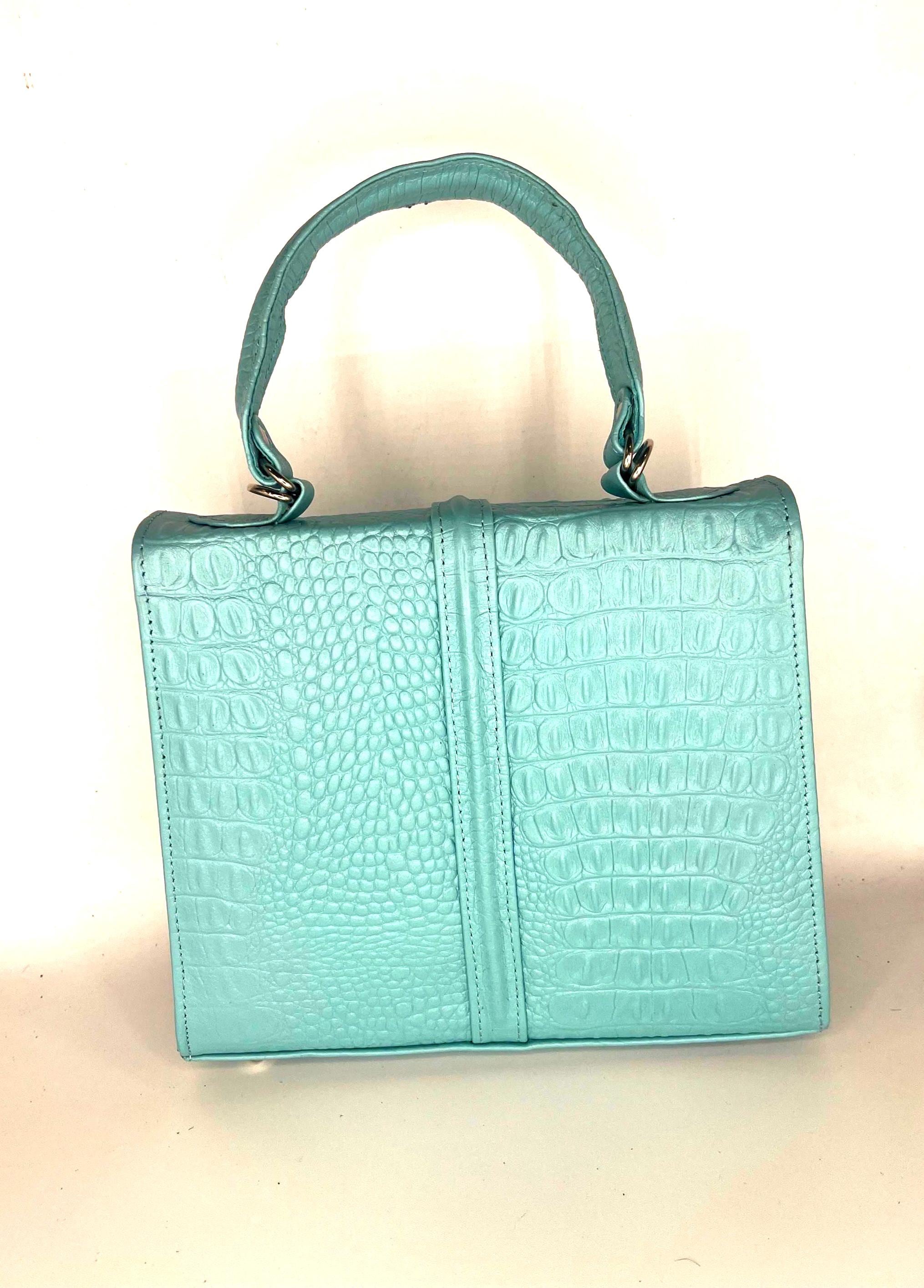Experience the allure of genuine alligator with this artisan-crafted bag, where the warm burnt orange and refreshing aqua colors bring a desert landscape hue to life. Handcrafted from genuine American alligator leather, this compact daily purse offers a unique texture that elevates everyday style. Designed for women who seek a luxury gift handbag that blends timeless elegance with exceptional durability.