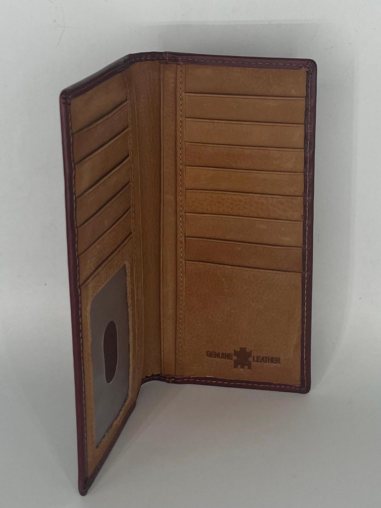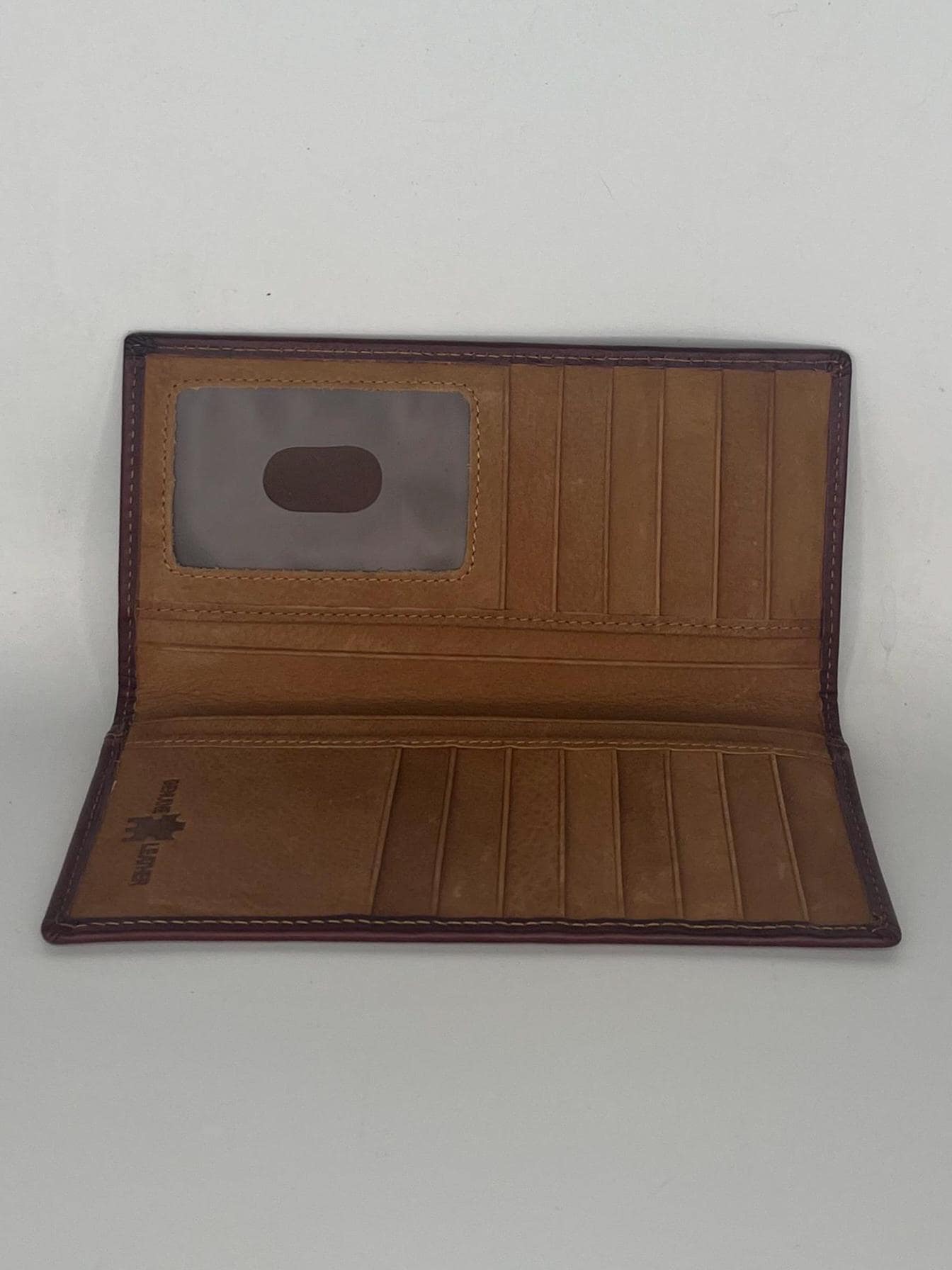 Crafted with attention to detail, this wallet combines durability, artistry, and function. The detailed tooling highlights the natural grain of the leather, making every piece unique with its own character and texture.