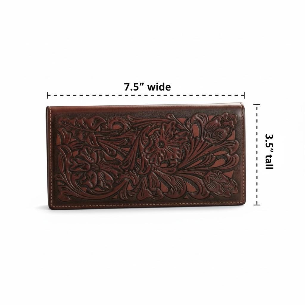 Elevate your everyday carry with this beautifully hand-carved leather wallet, designed for those who appreciate timeless craftsmanship and elevated Western style. Each wallet features an intricate floral tooled pattern, carefully carved into genuine leather to create a bold yet classic statement piece.