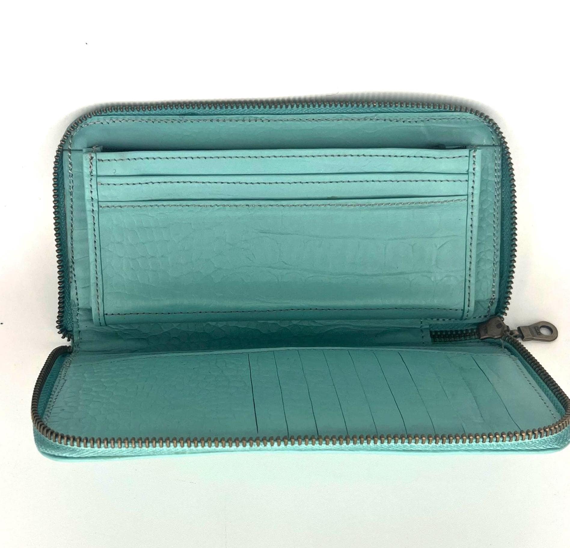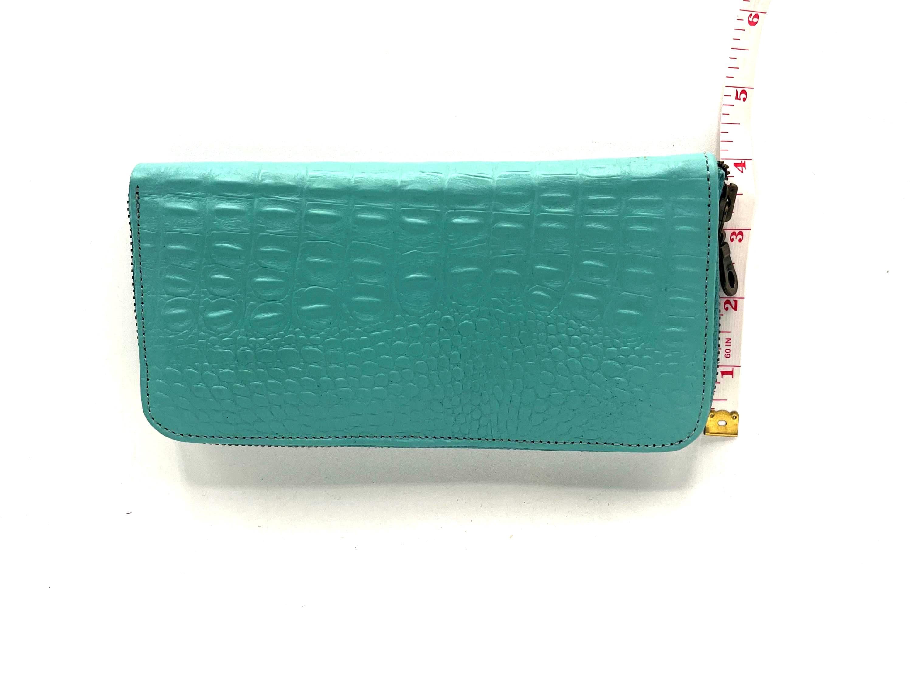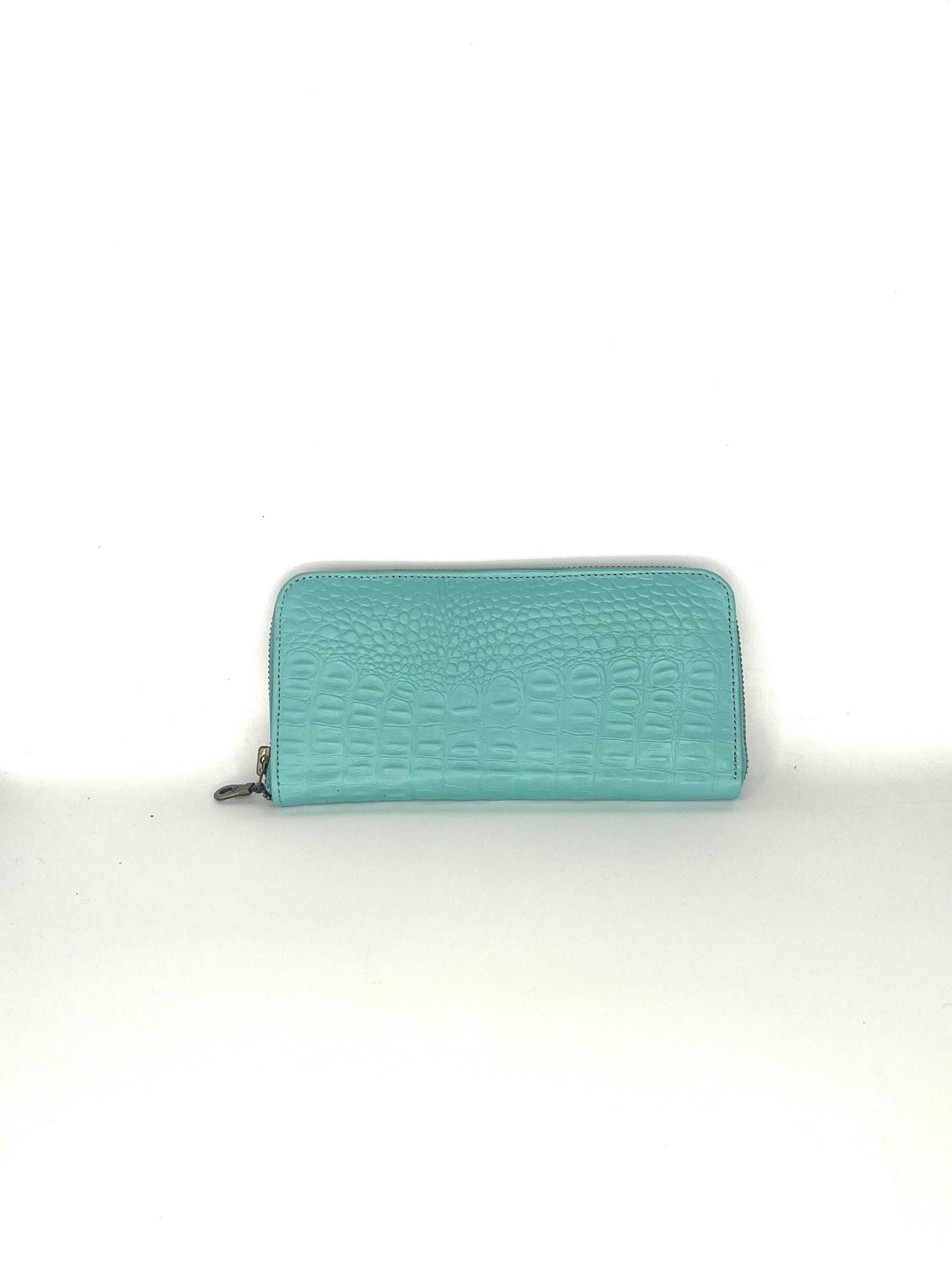 Discover the allure of artisanal craftsmanship with this ladies zipper wallet, where alligator meets bold turquoise hues inspired by southwestern style. Each piece is meticulously hand carved to reveal a unique texture, making it a standout gift for her or an everyday use handbag that elevates your accessory game. Perfectly blending durability with vibrant color, this item is designed to turn heads and last through years of use.