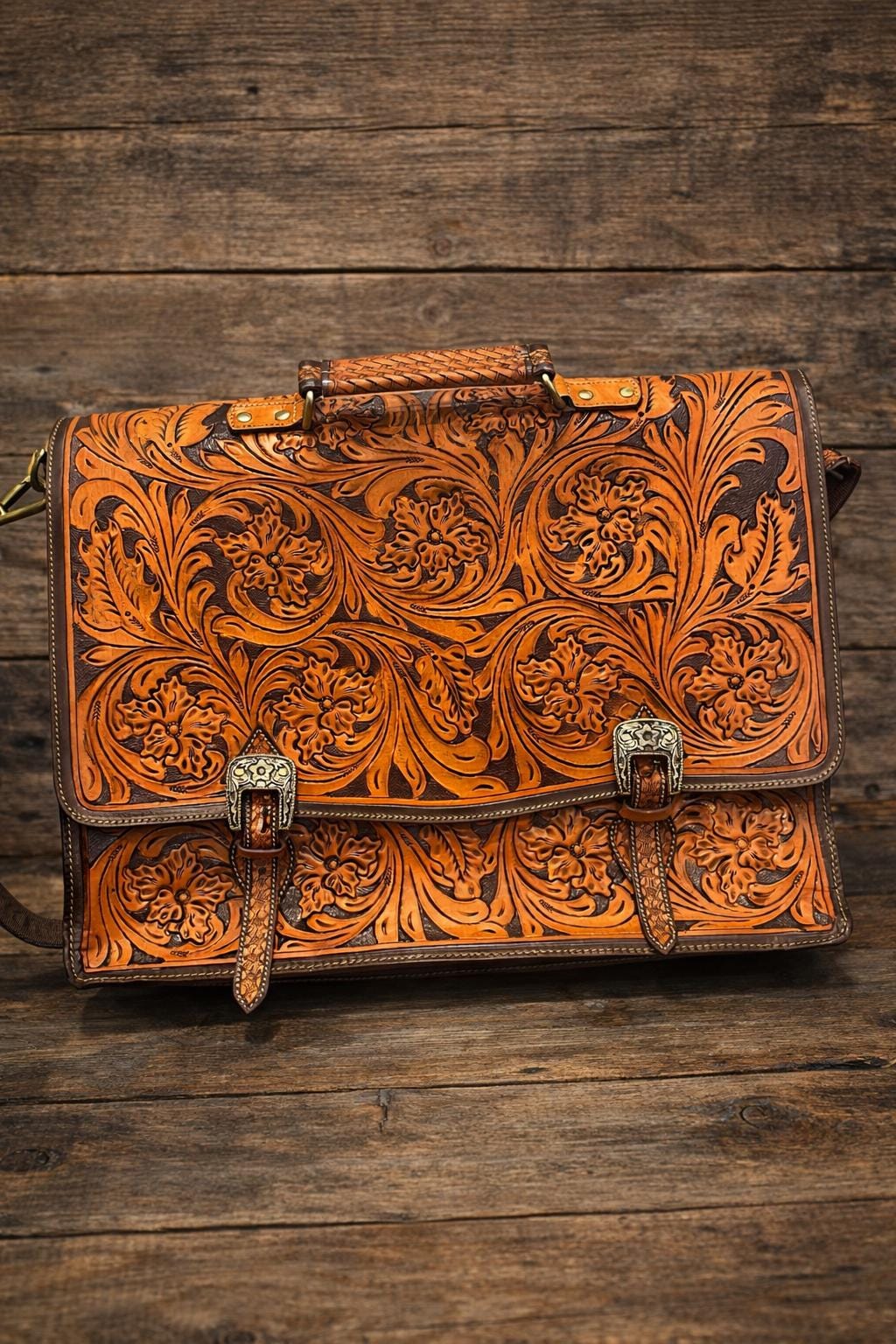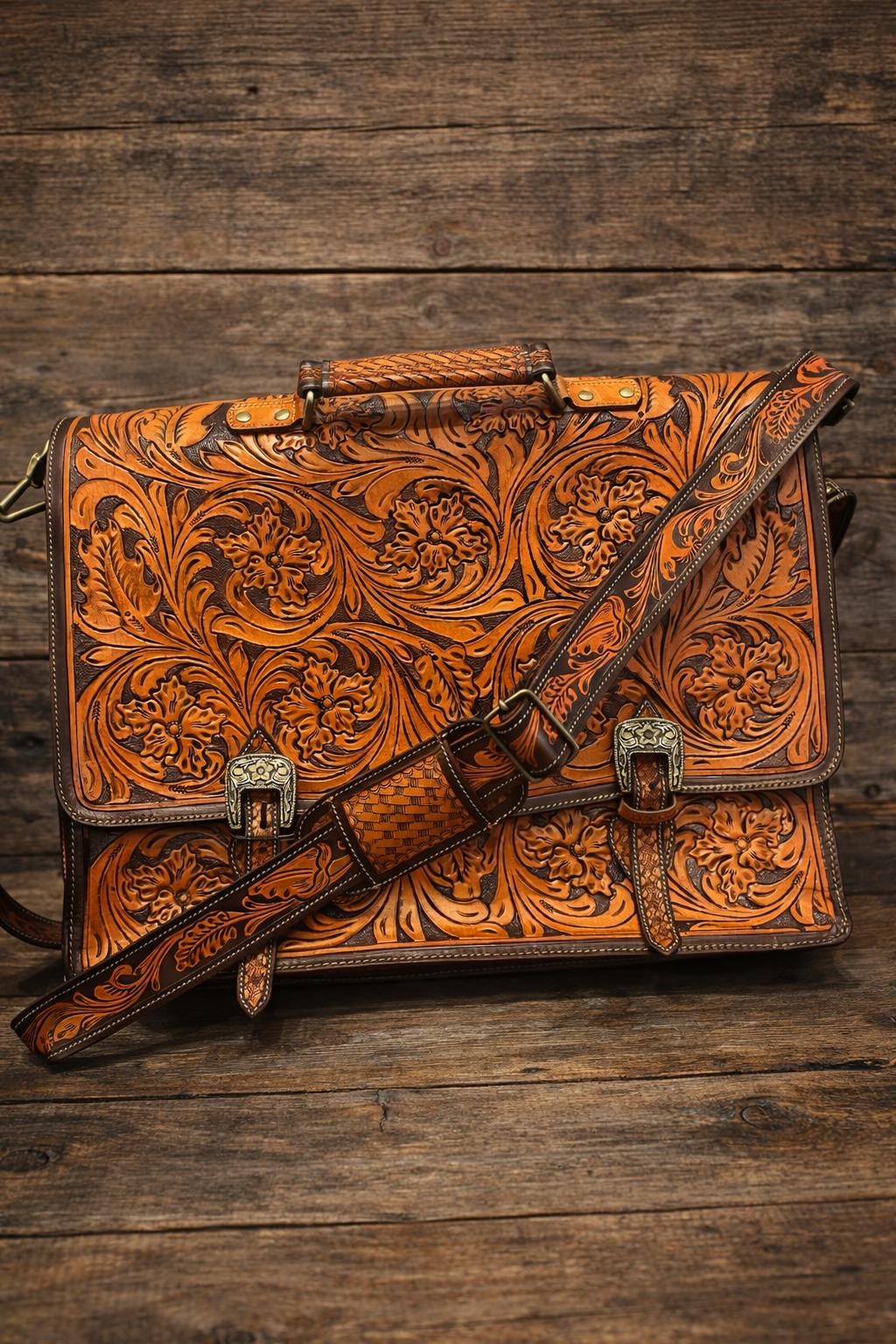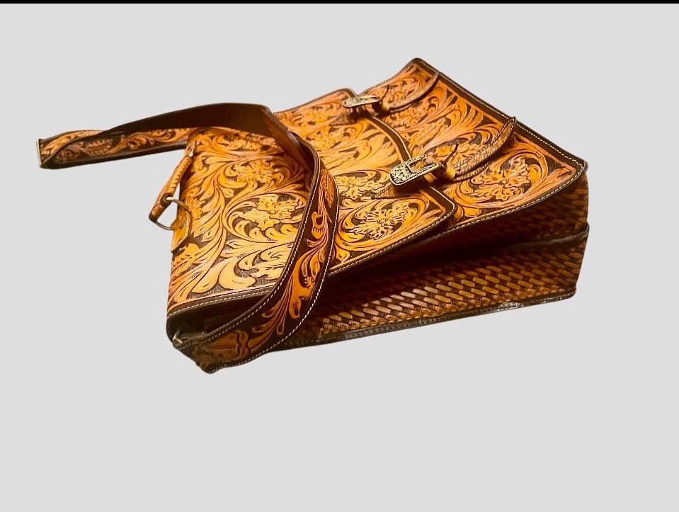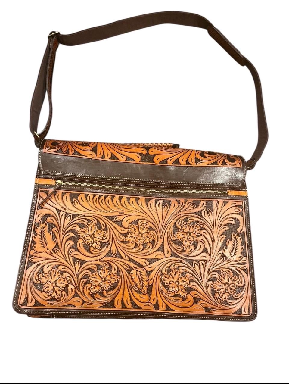 Discover the artistry behind our southwestern large leather laptop bag, where hand carved leather craftsmanship meets practical design. Each bag is a labor of love, meticulously tooled by expert artisans over the course of a week to create a unique messenger bag perfect for daily use. Whether you're a teacher or a professional, this laptop tote combines style and function seamlessly.