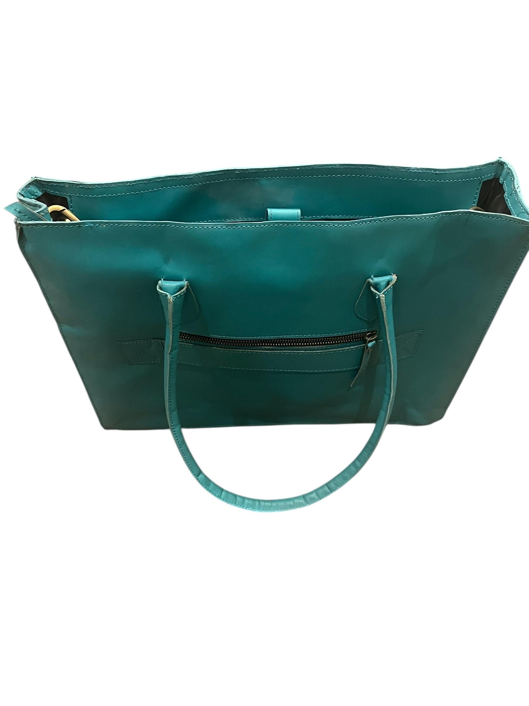 - Crafted from high-quality leather available in brown or aqua turquoise shades