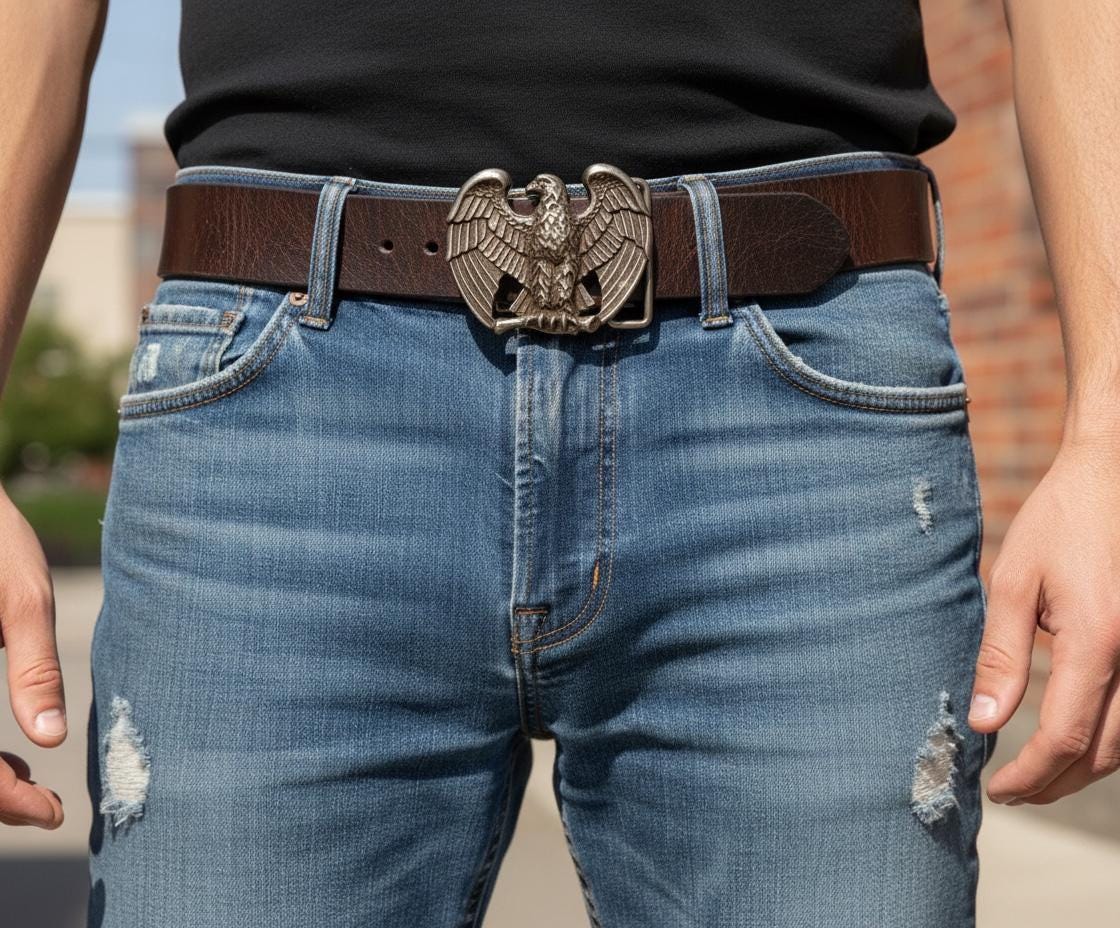 Embrace a piece of vintage Americana with this optional handmade cowhide leather belt, crafted to evoke rugged elegance and timeless style. Inspired by classic western wear, this belt features a buckle that adds a distinctive touch, perfect for those who appreciate authentic craftsmanship. The belt is Made in Patchogue NY, it blends durable materials with a nod to 1970s leather belt designs, offering versatile options for size and color.