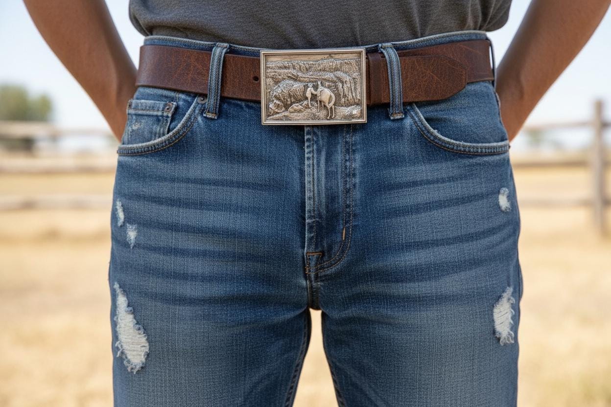 Embrace a piece of vintage Americana with this optional handmade cowhide leather belt, crafted to evoke rugged elegance and timeless style. Inspired by classic western wear, this belt features a buckle that adds a distinctive touch, perfect for those who appreciate authentic craftsmanship. The belt is Made in Patchogue NY, it blends durable materials with a nod to 1970s leather belt designs, offering versatile options for size and color.