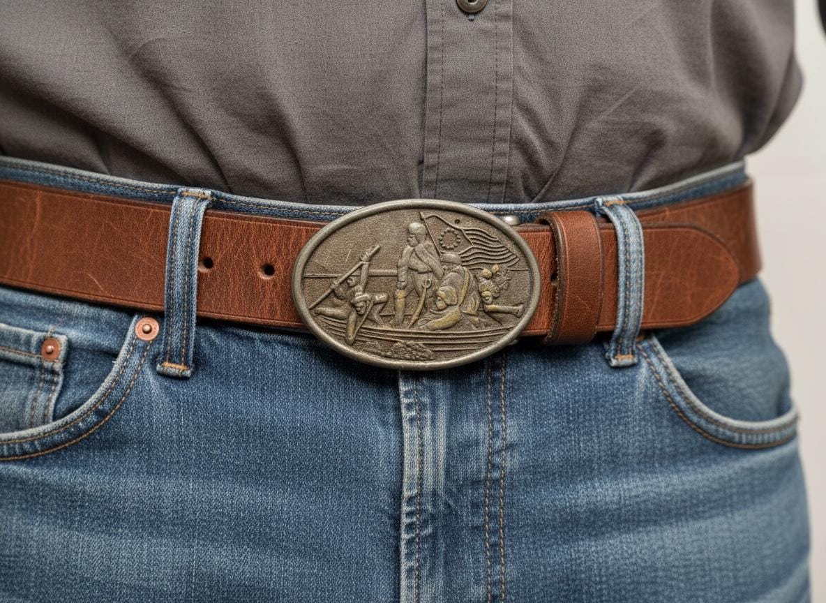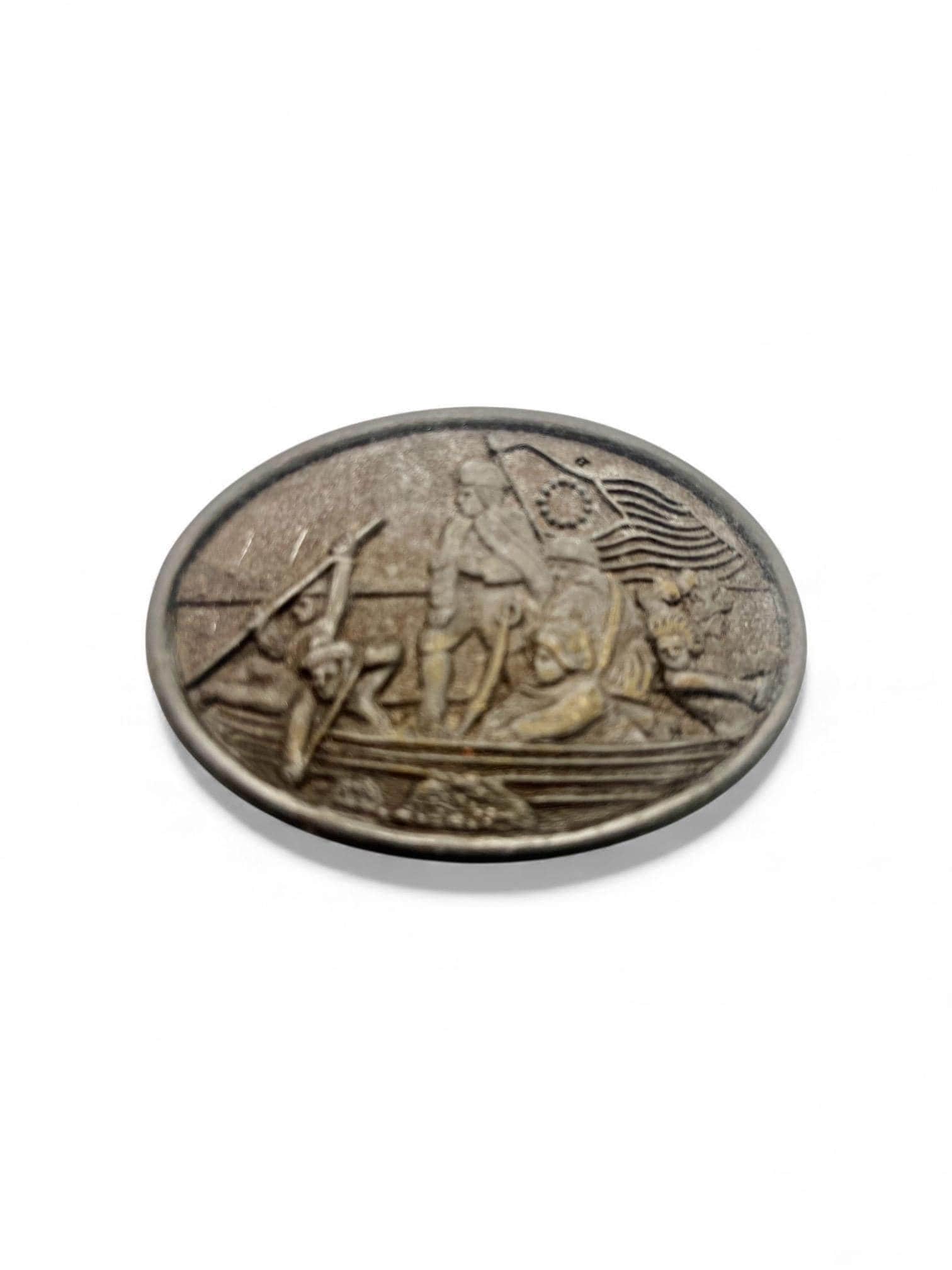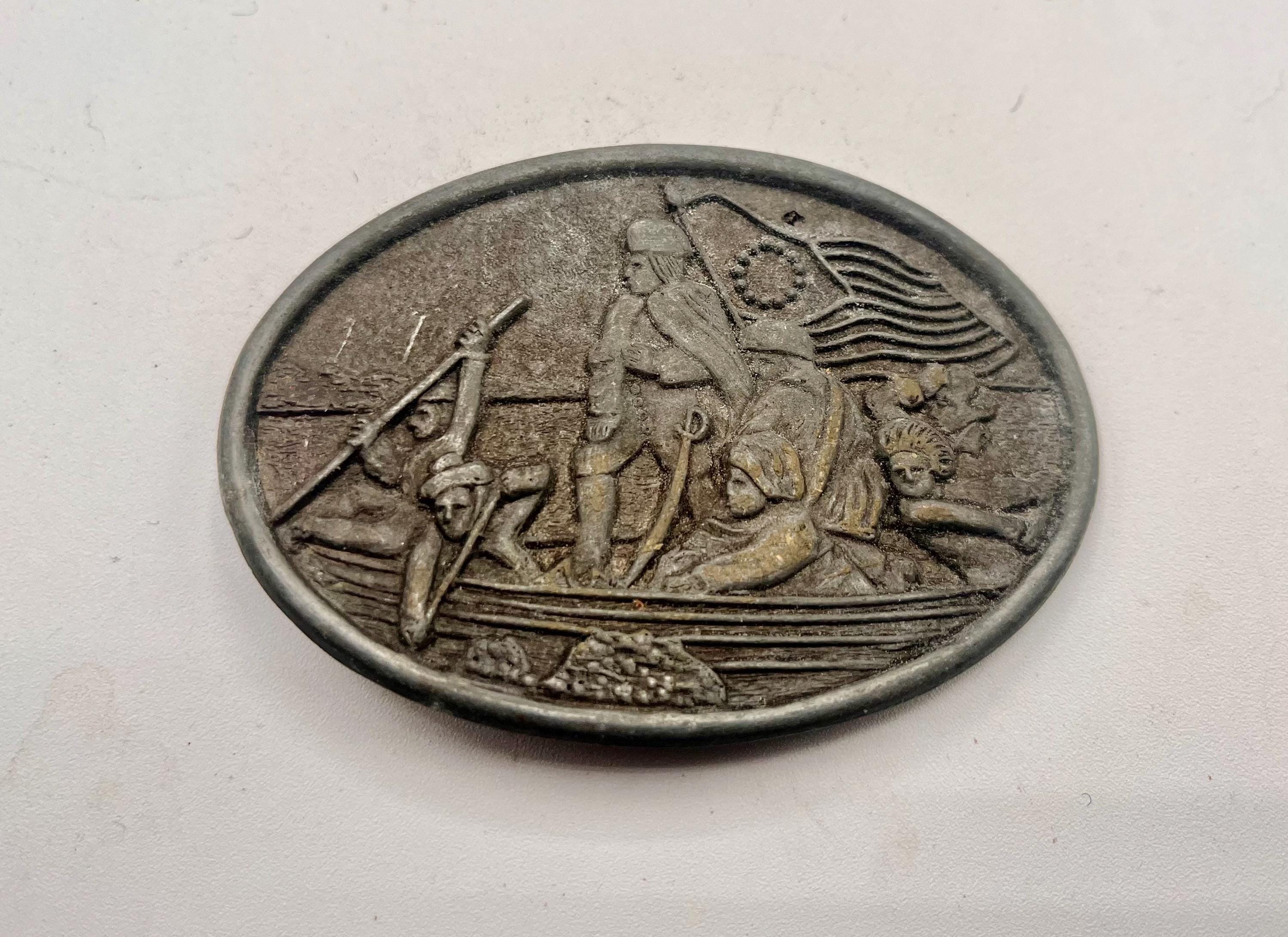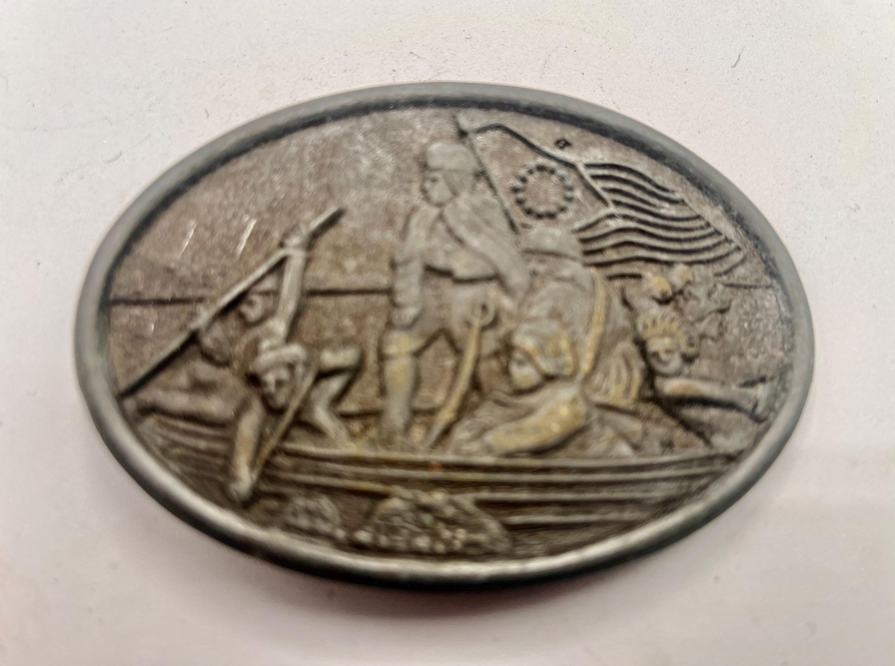 Vintage Belt Buckle of George Washington and soldiers crossing the Delaware River