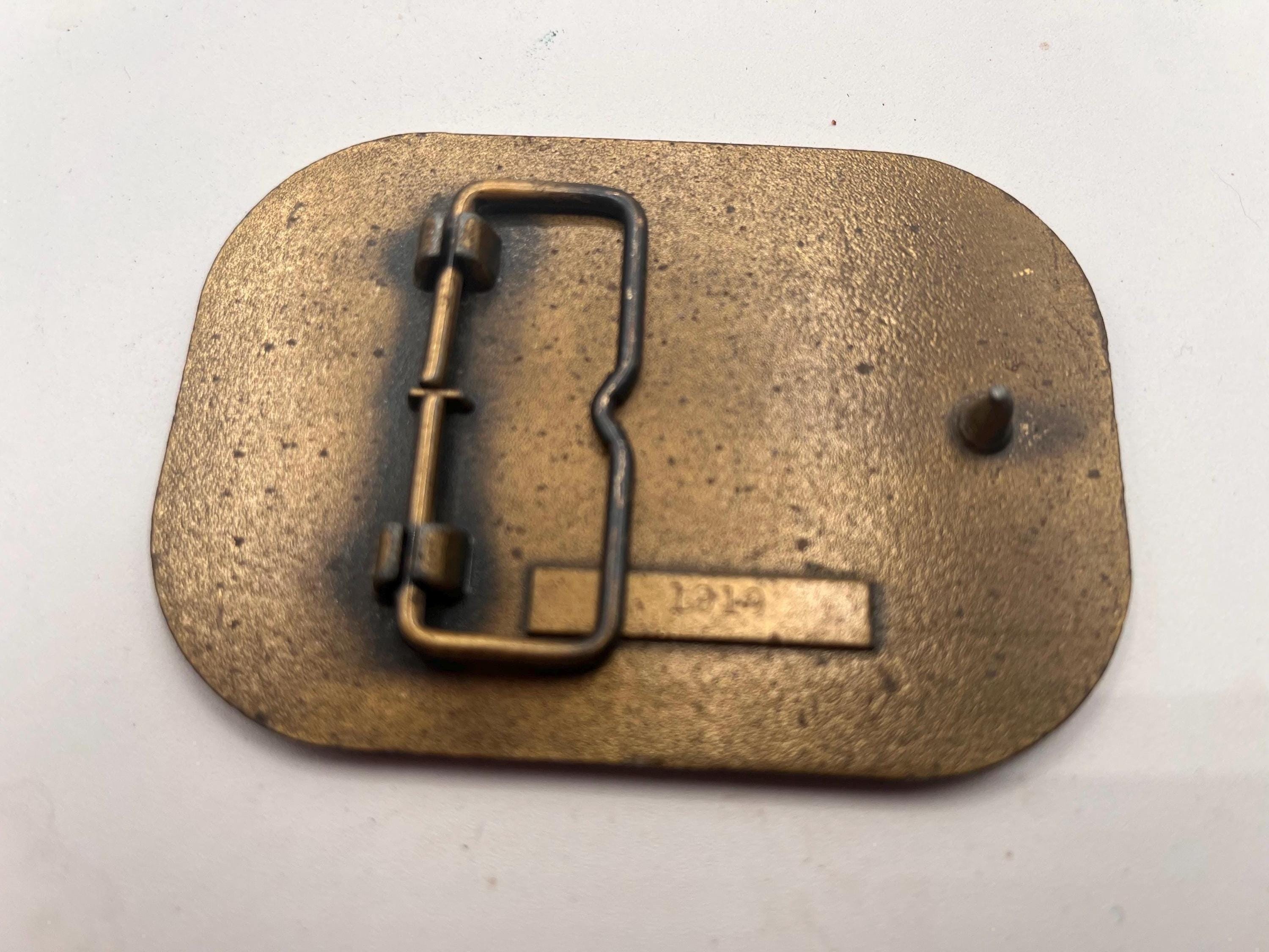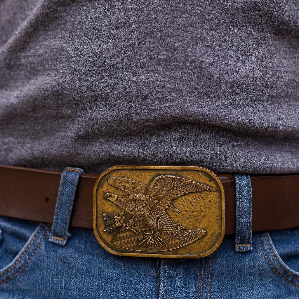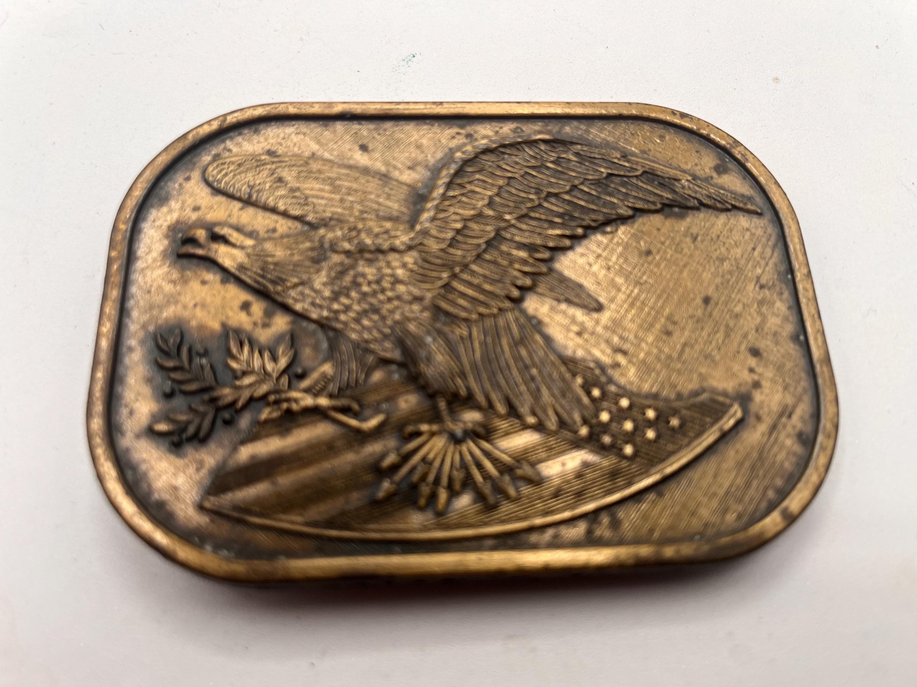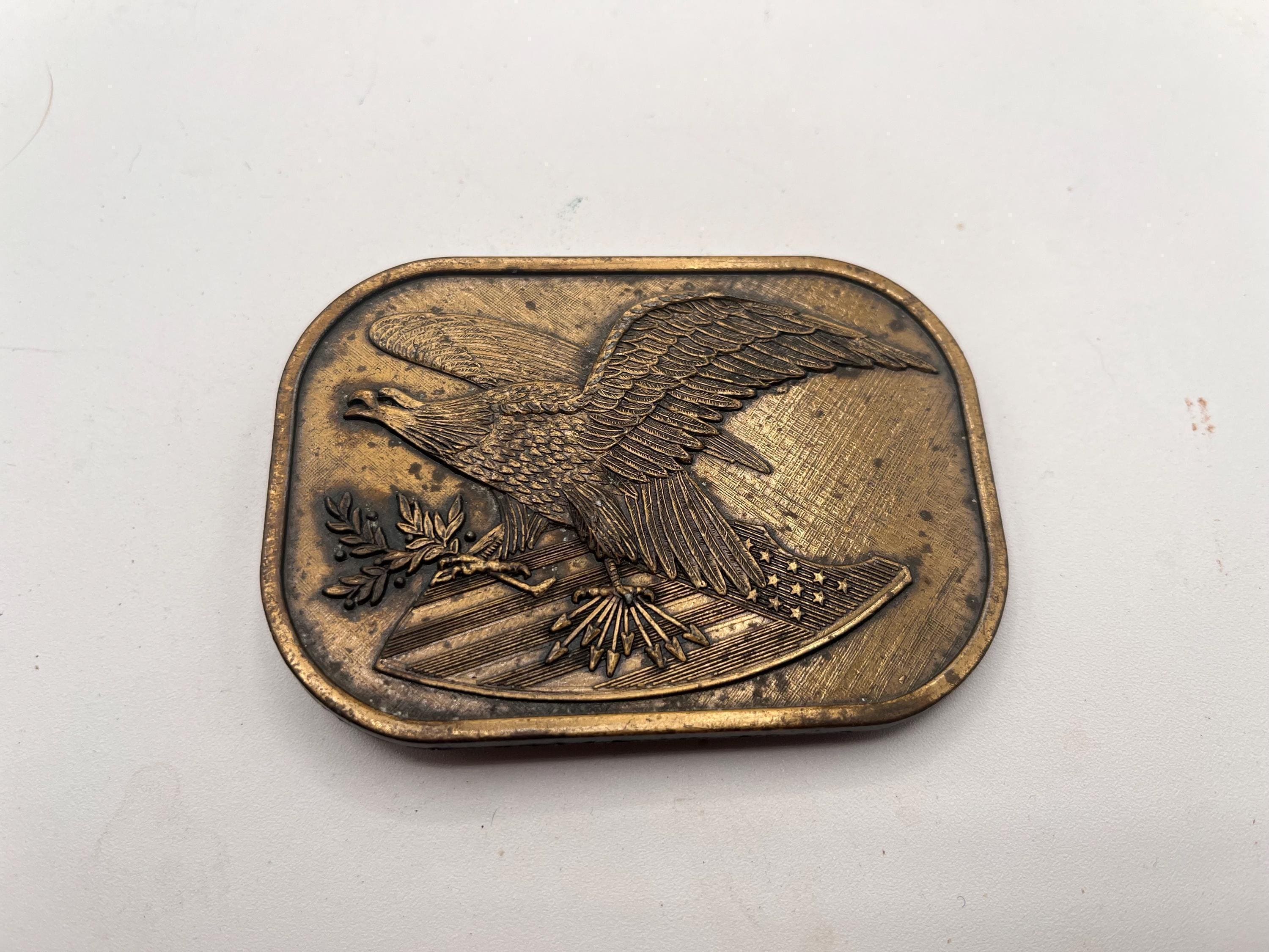 Vintage Belt Buckle American Eagle with Flag on shield, Solid Brass