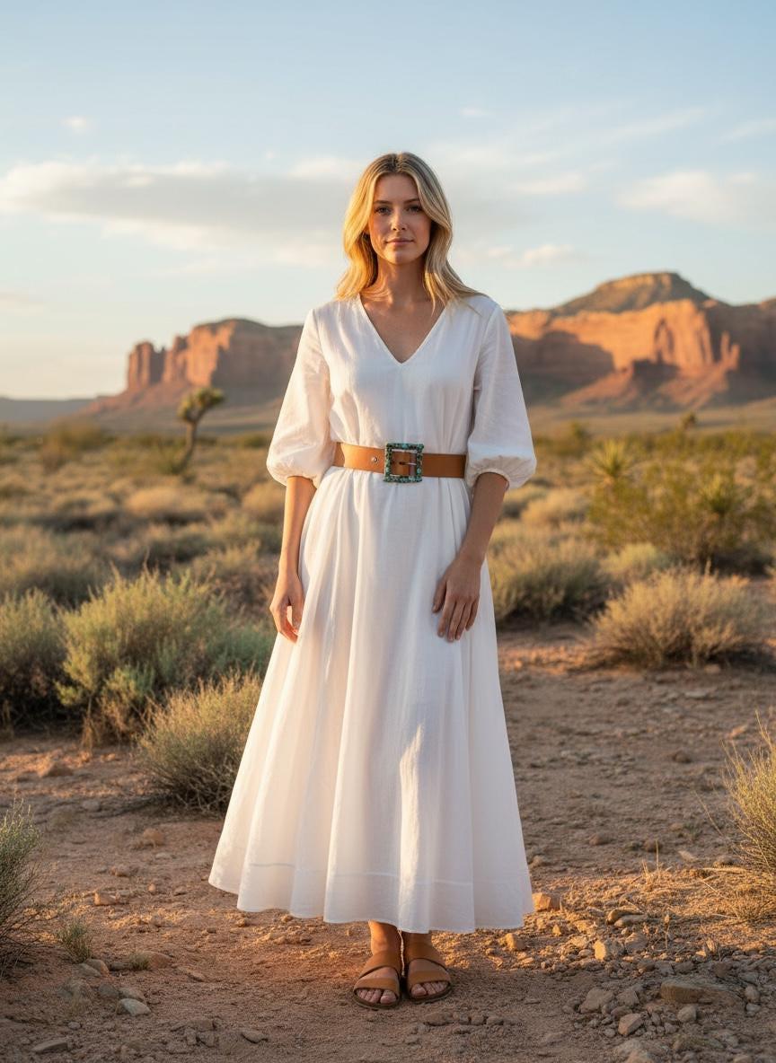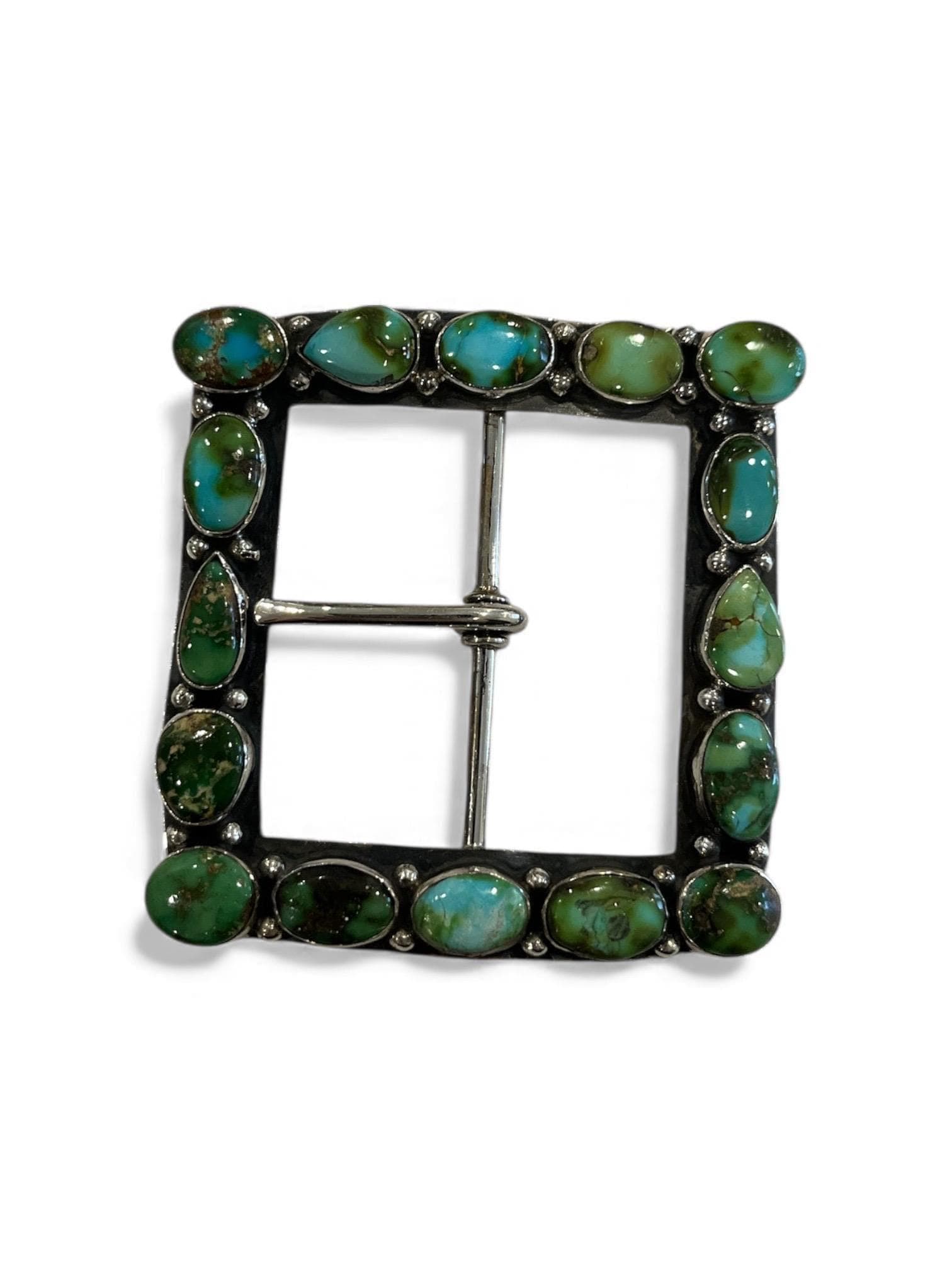 This timeless buckle features natural turquoise set in solid sterling silver, creating a striking statement piece rooted in Southwestern heritage and craftsmanship. Each buckle is paired with our custom-made leather belt, cut and finished by hand for durability, comfort, and heirloom quality.
