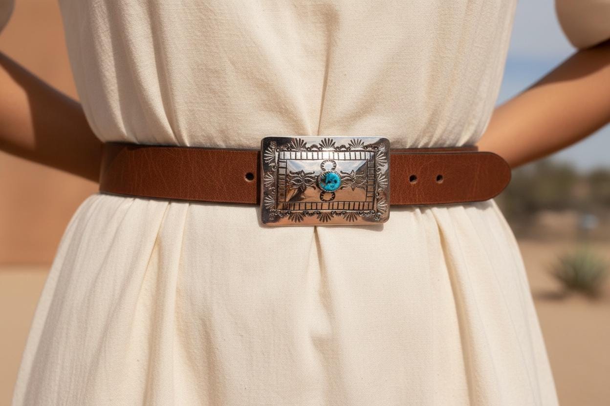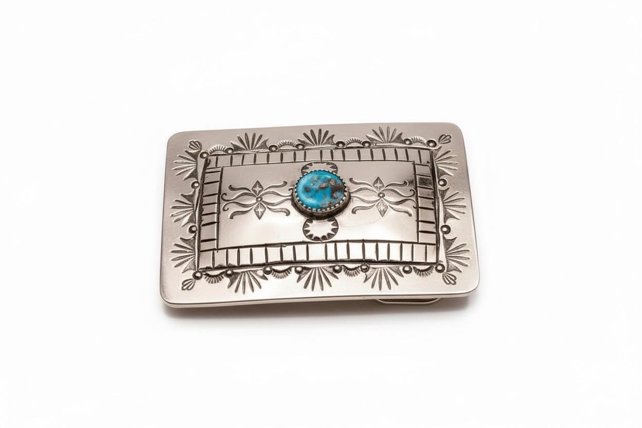 Celebrate the spirit of the Southwest with this stunning handmade Navajo turquoise belt buckle, crafted to embody rugged charm and timeless elegance. Featuring genuine Kingman Mine turquoise set in gleaming nickel silver, this piece is a true rustic western gift that honors authentic craftsmanship. Paired with a supple leather belt available in classic colors, it’s designed to complement your style with custom waist sizes for the perfect fit.