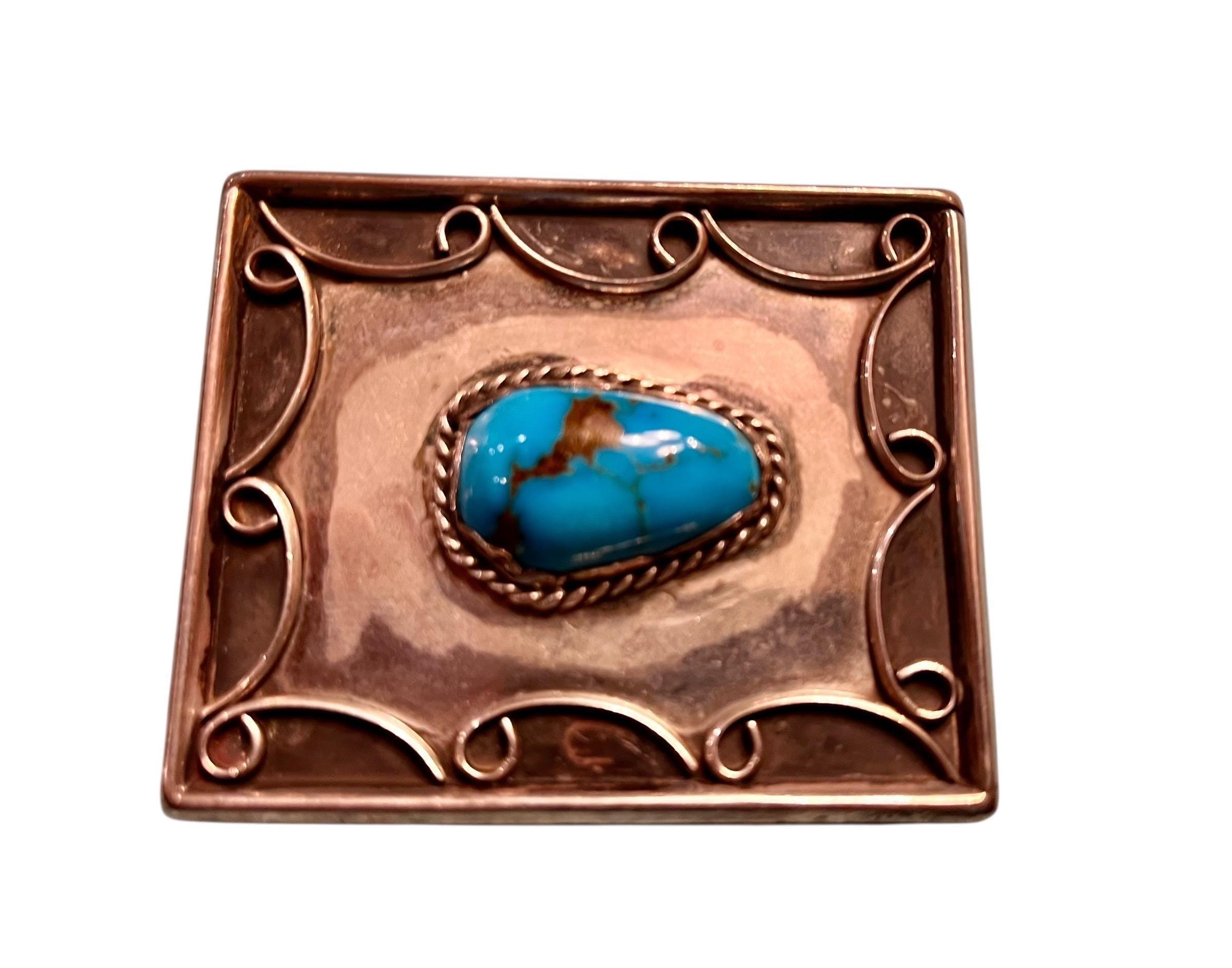 This stunning Southwestern turquoise sterling silver belt buckle features a design that embodies strength and heritage with two feathers and an intricate border design. This is a very heavy, rare piece. This piece pairs beautifully with a supple saddle leather belt available in rich British tan, dark brown, or black hues. Each buckle is a testament to decades of Southwestern artistry and meticulous handmade craftsmanship.