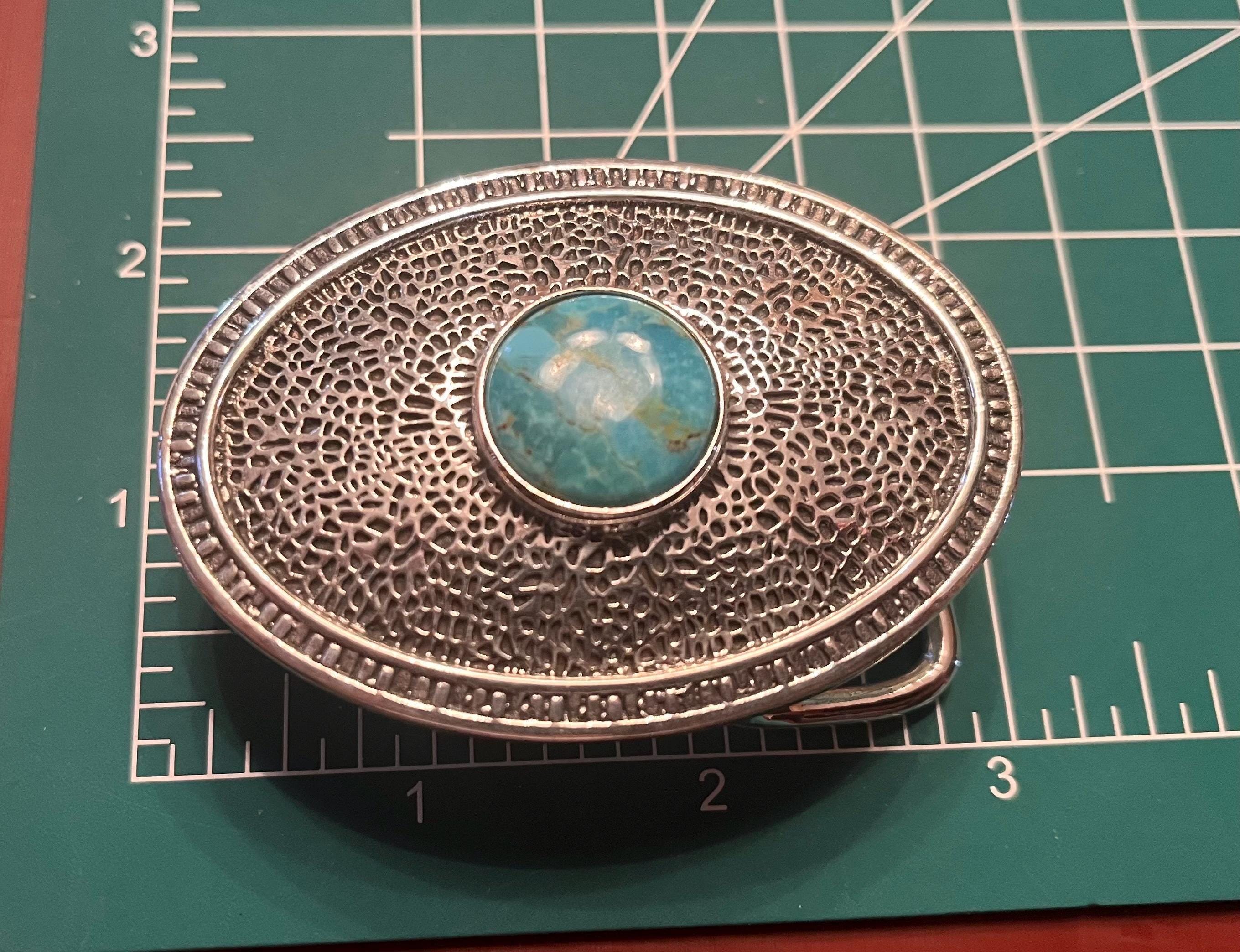 Elevate your western and southwestern wardrobe with this genuine turquoise and sterling silver belt buckle paired with a handcrafted full-grain leather belt, made in the USA.