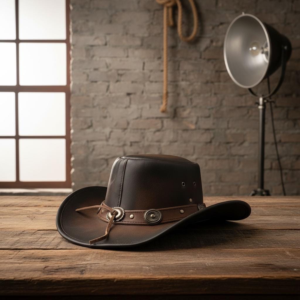 Make a bold western statement with this handcrafted genuine cowhide cowgirl hat, designed for authentic style and long-lasting durability. Featuring a rich distressed leather finish and a decorative western concho band, this hat blends classic cowboy tradition with modern rustic fashion.