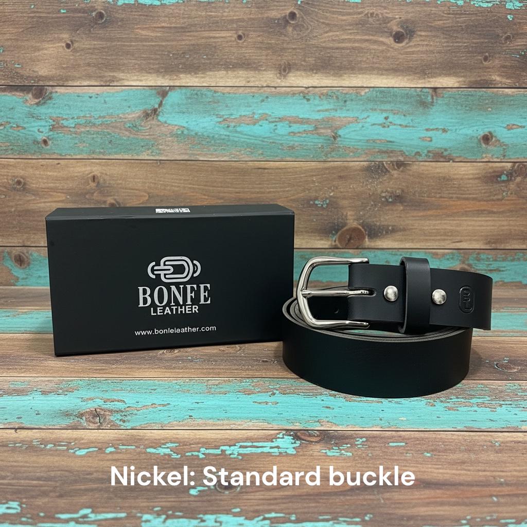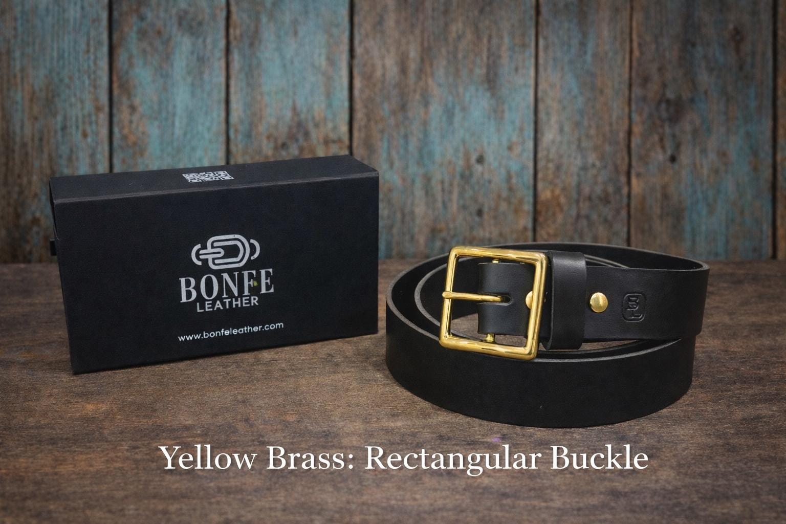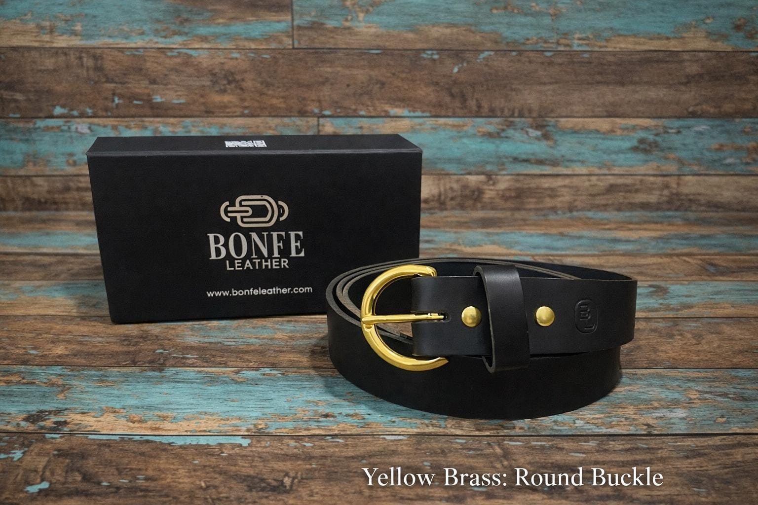 Thickness: Our belts are cut to 1.5” but we can cut down to any other thickness. Please include specific thickness in personalization request at checkout.