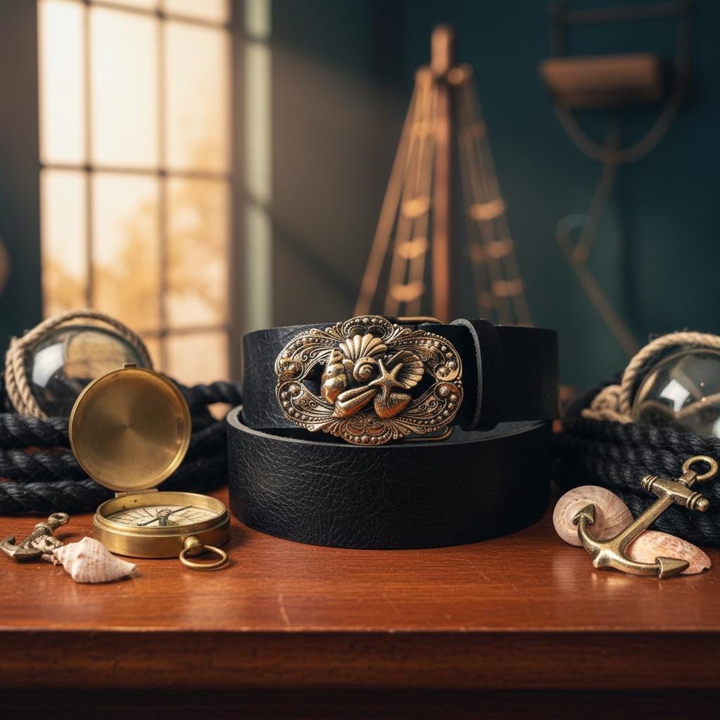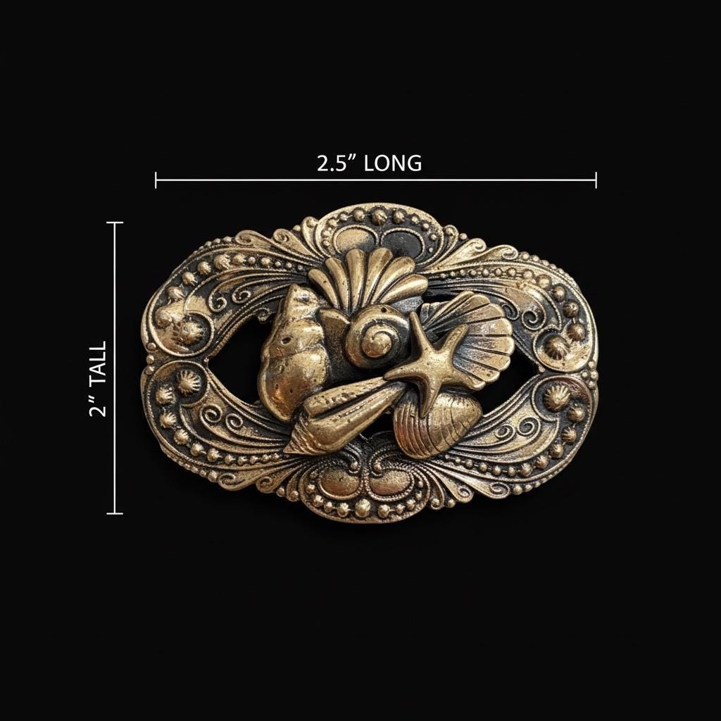 Bring refined seaside elegance to your wardrobe with this beautifully detailed coastal seashell belt buckle paired with a custom-cut genuine leather belt. Designed with an ornate vintage-inspired frame and sculpted shell and starfish centerpiece, this buckle blends feminine coastal charm with timeless sophistication.
